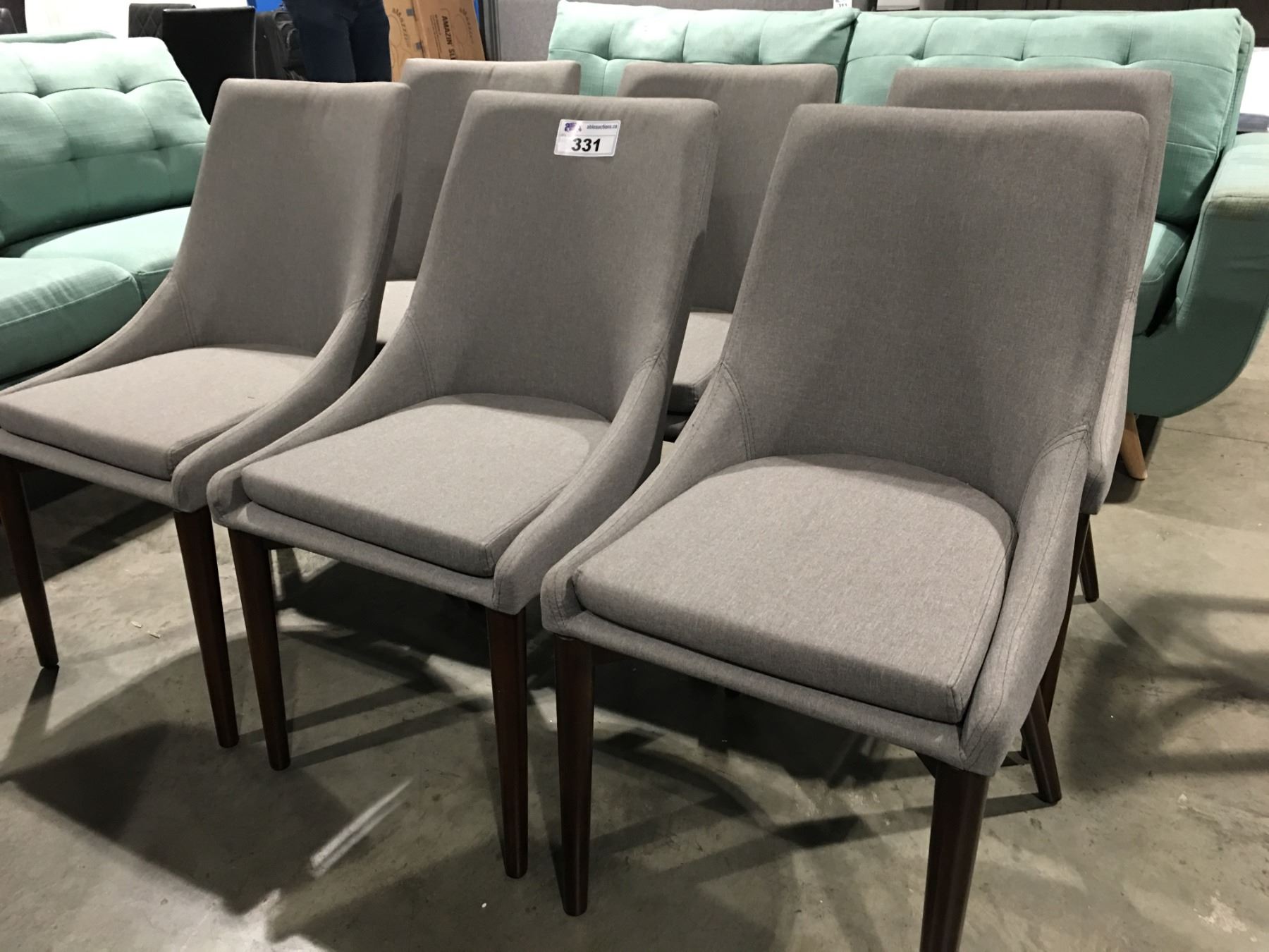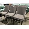 SET OF 6 GREY UPHOLSTERED WITH DARK HARDWOOD LEGS DINING ROOM CHAIRS
