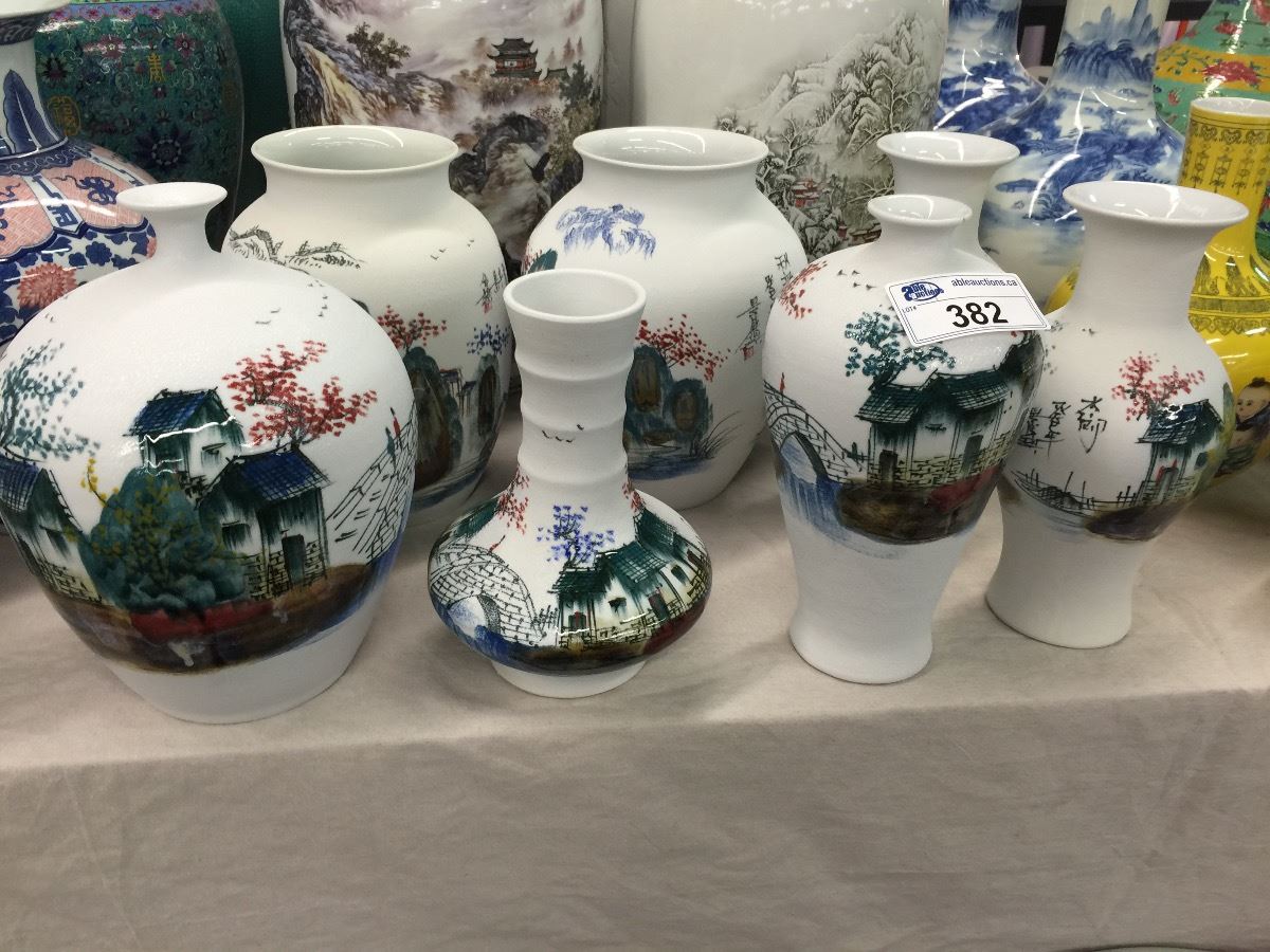 SET OF 7 MATTE FINISH CHINESE DECORATED VASES