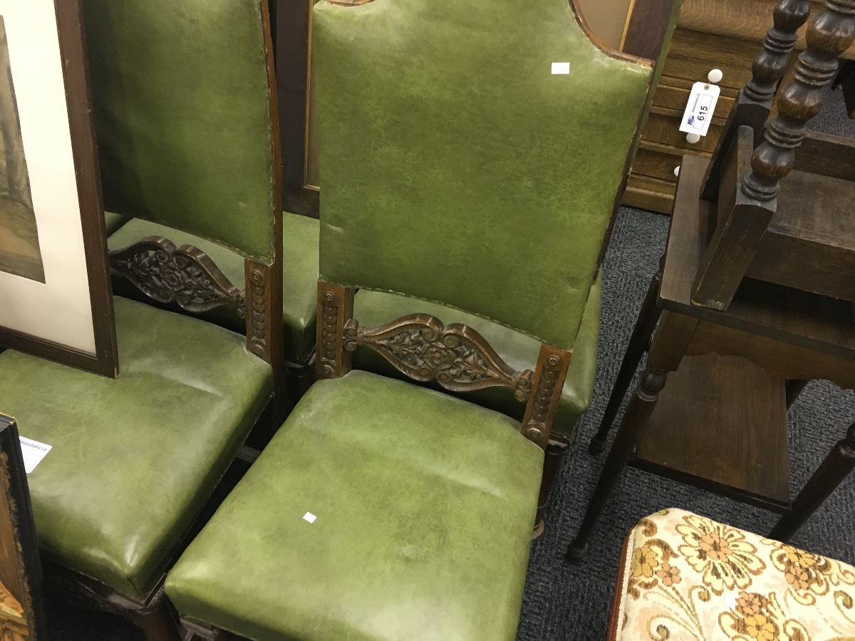 SET OF 8 OAK AND LEATHER HIGH BACK EDWARDIAN STYLE CHAIRS, 1890S