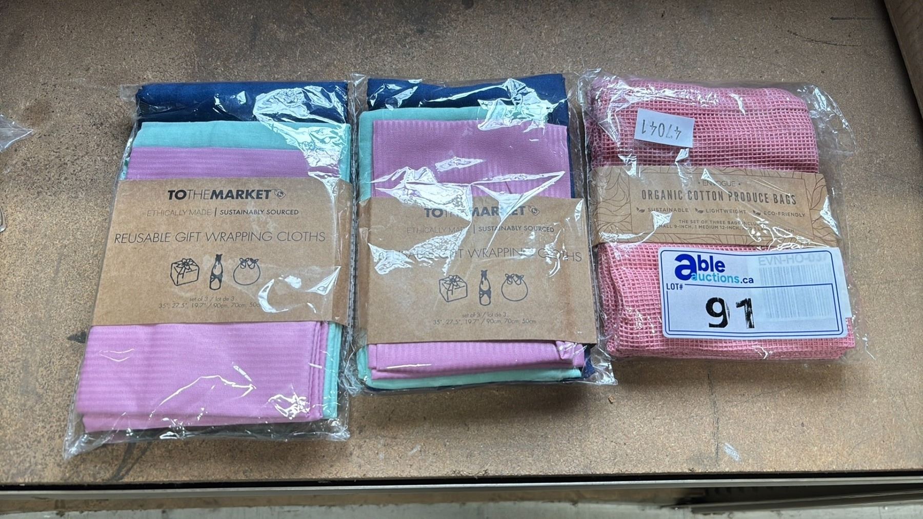 SET OF ORGANIC COTTON PRODUCE BAGS & TWO SETS OF REUSABLE GIFT WRAPPING CLOTHS