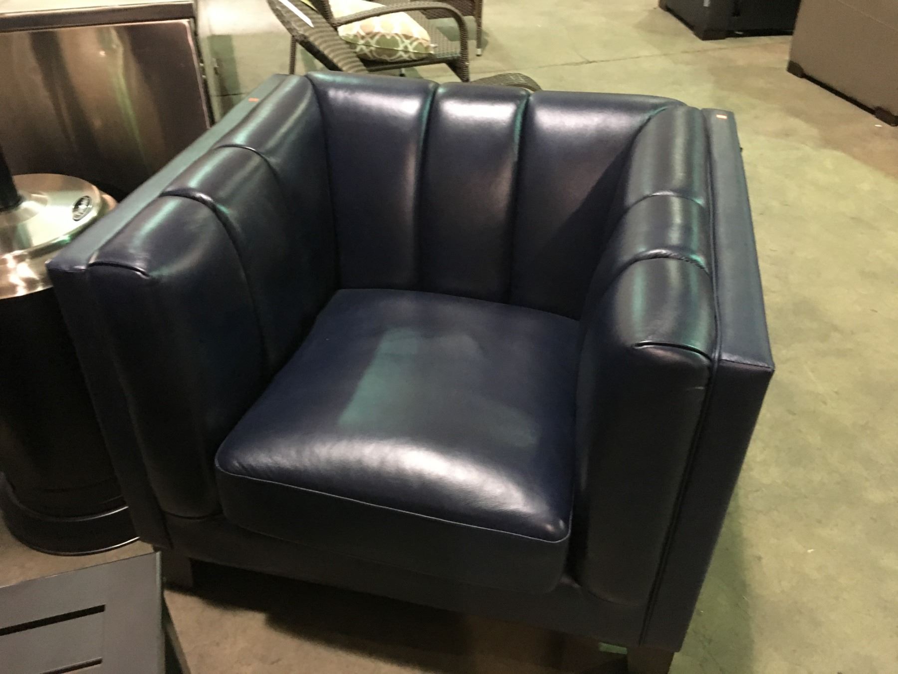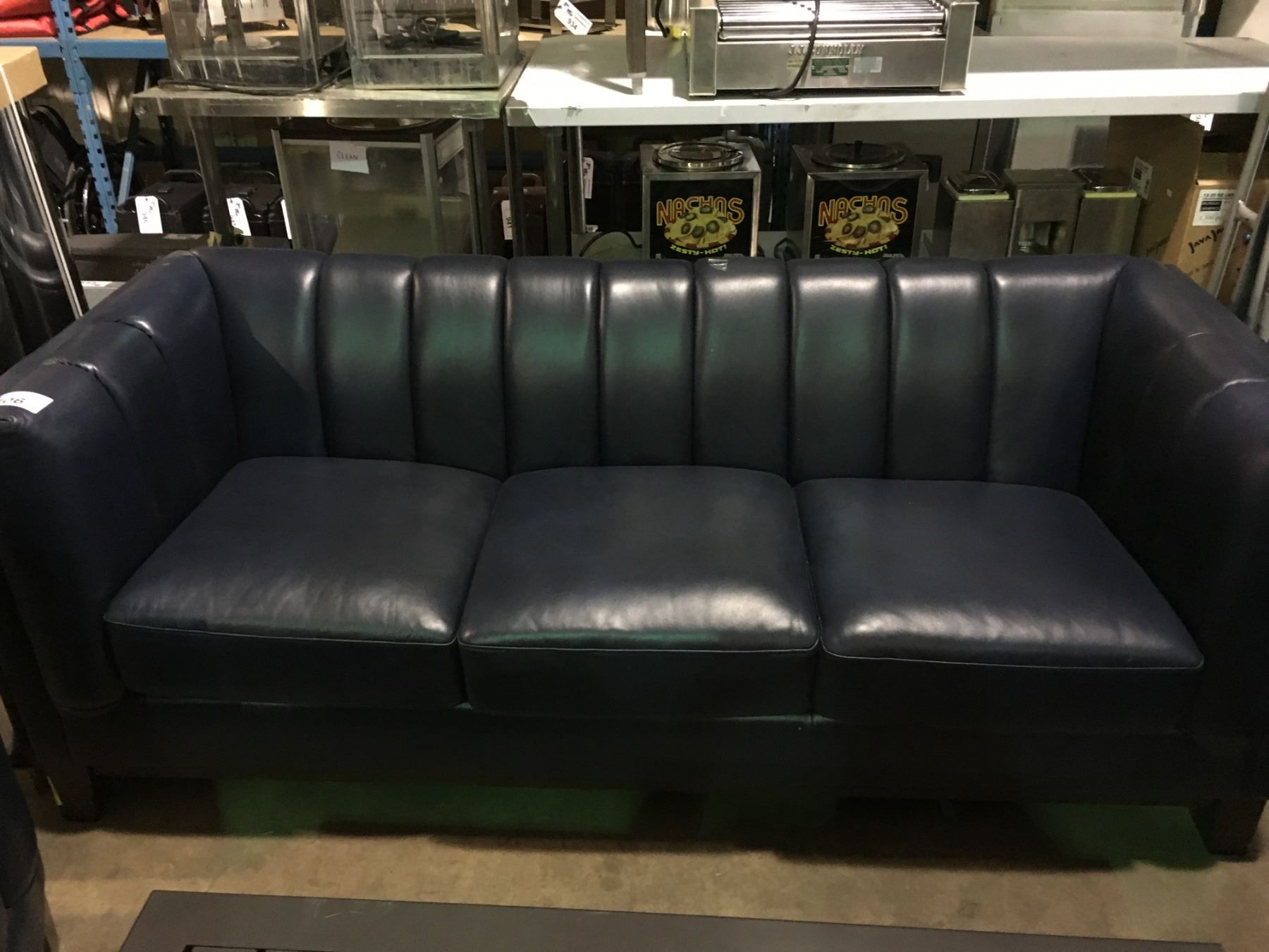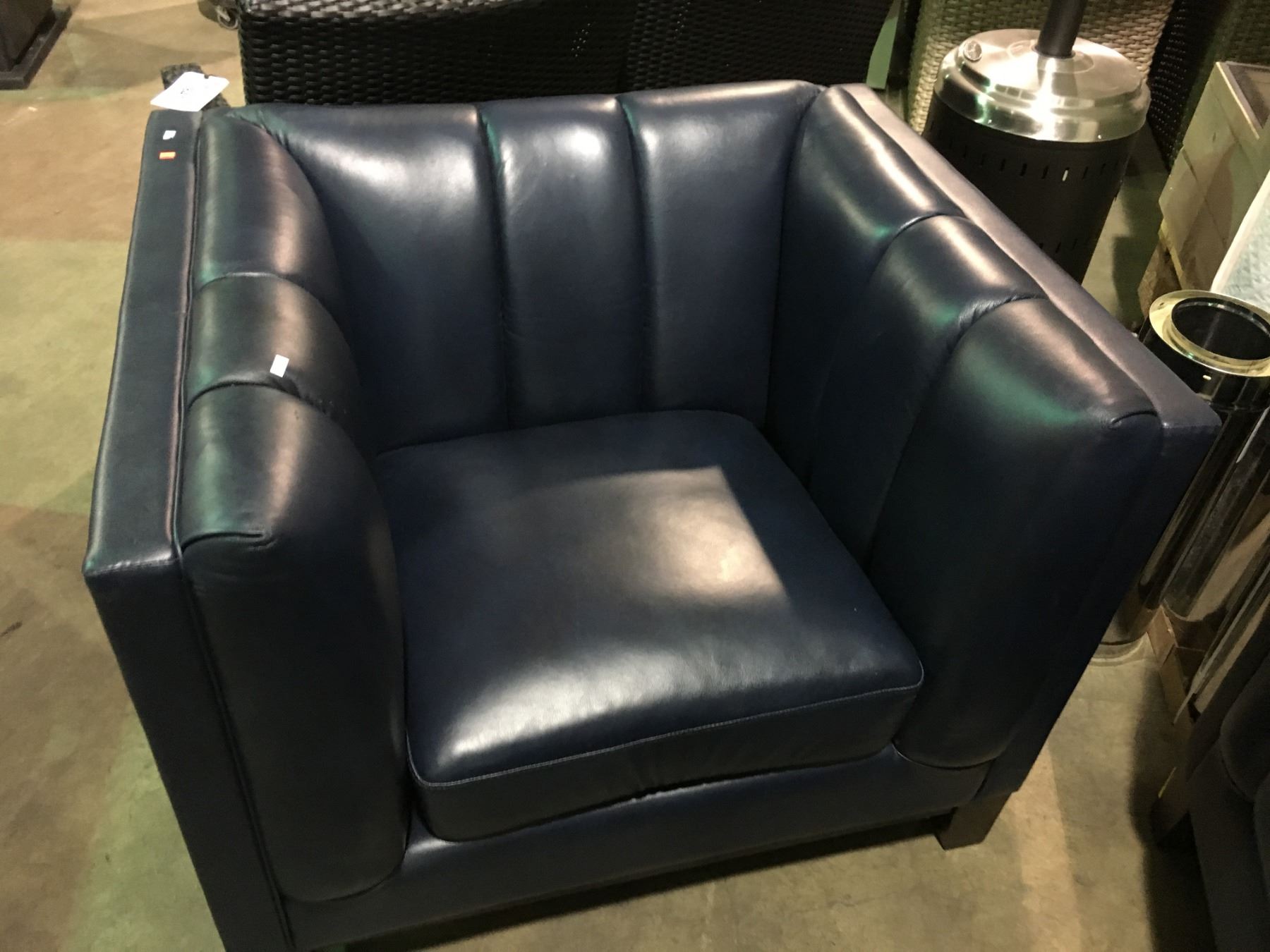 SEVERINO BLUE LEATHER 3 SEAT SOFA & 2 ARM CHAIRS