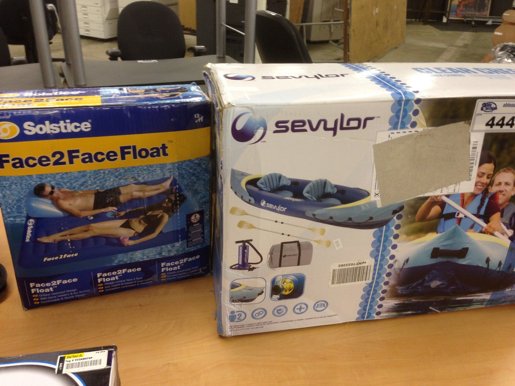 SEVYLOR TWO PERSON INFLATABLE KAYAK WHICH INCLUDE PUMP, PADDLES AND CARRY CASE ALSO A 2 PERSON INFLATABLE POOL MATTRESS