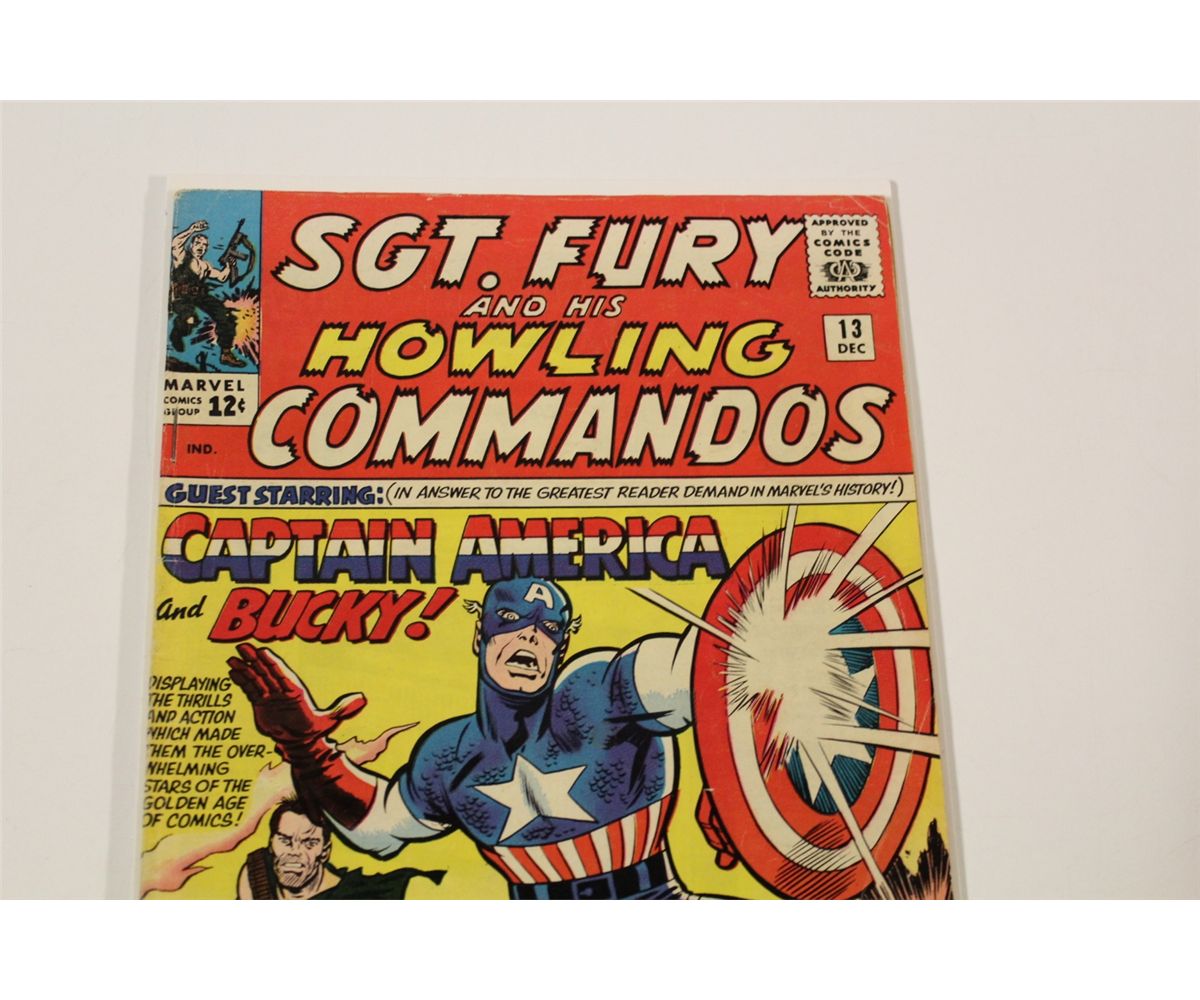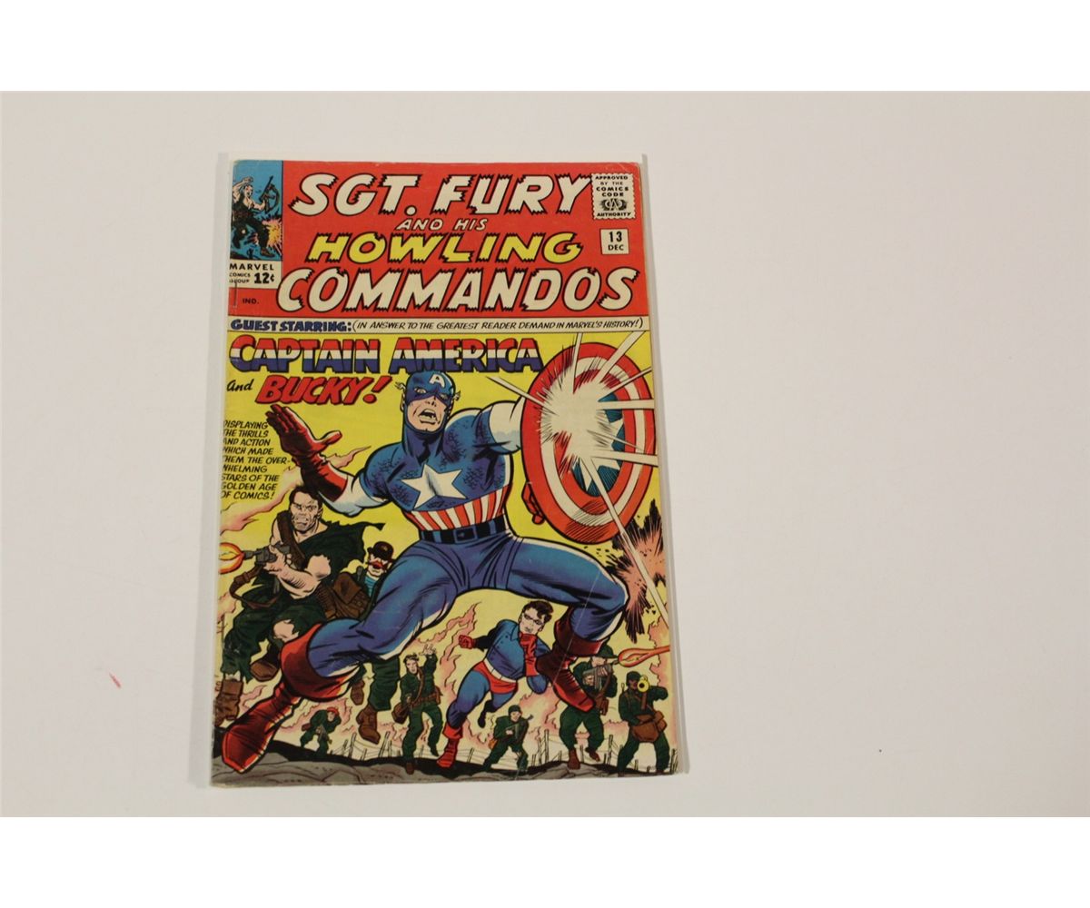 SGT. FURY #13 (1964) KEY ISSUE, CLASSIC KIRBY COVER. EARLY SILVER AGE CAPTAIN AMERICA APP. SOLID MID GRADE, GLOSSY, TIGHT & SUPPLE. VERY NICE COPY!