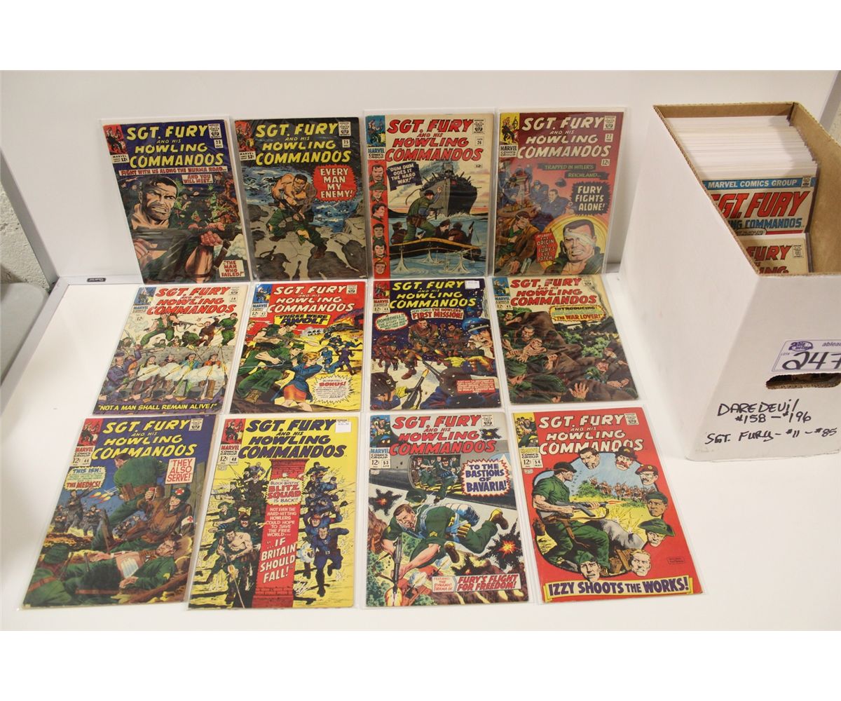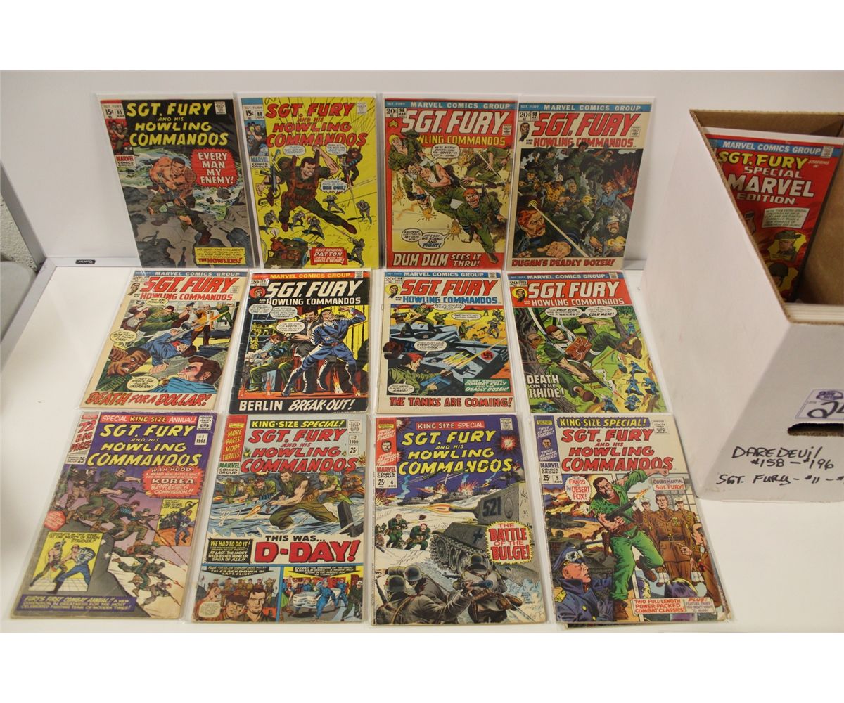 SGT. FURY #23-163 SOLID MID GRADE AVERAGE COPIES. INCLUDES #27- 1ST APP. ERIC KOENIG, KING-SIZE ANNUAL #1-6 (MINUS #3). 48 BOOKS TOTAL