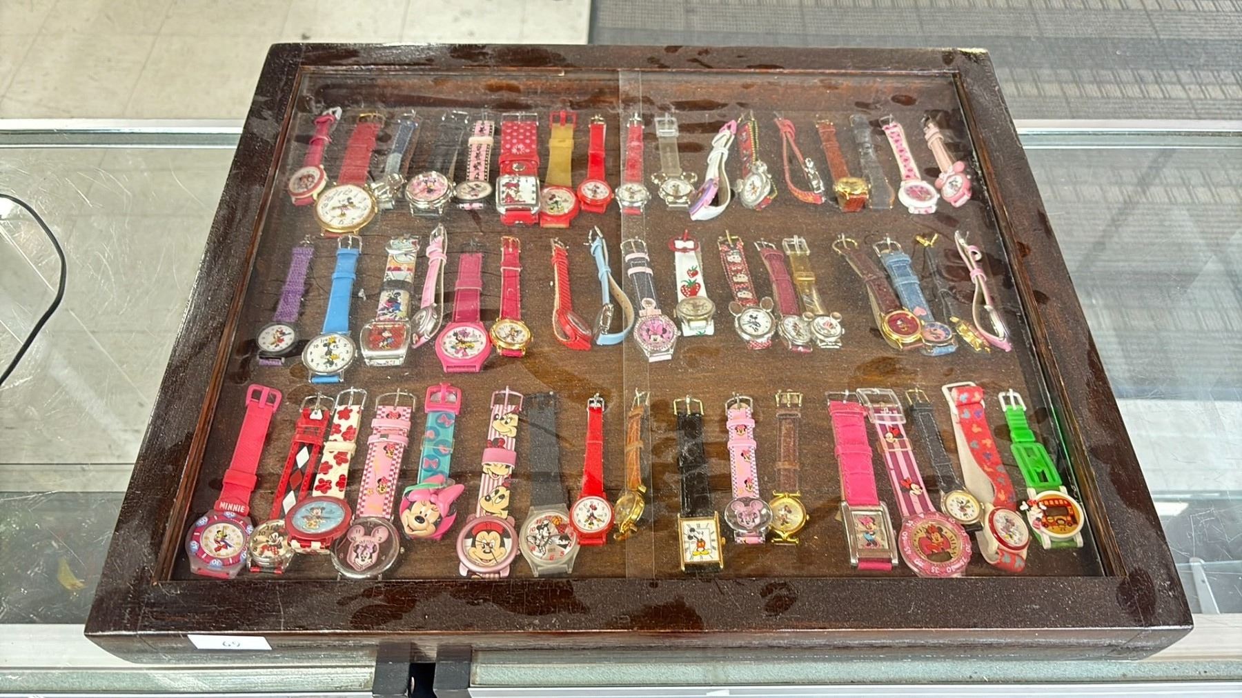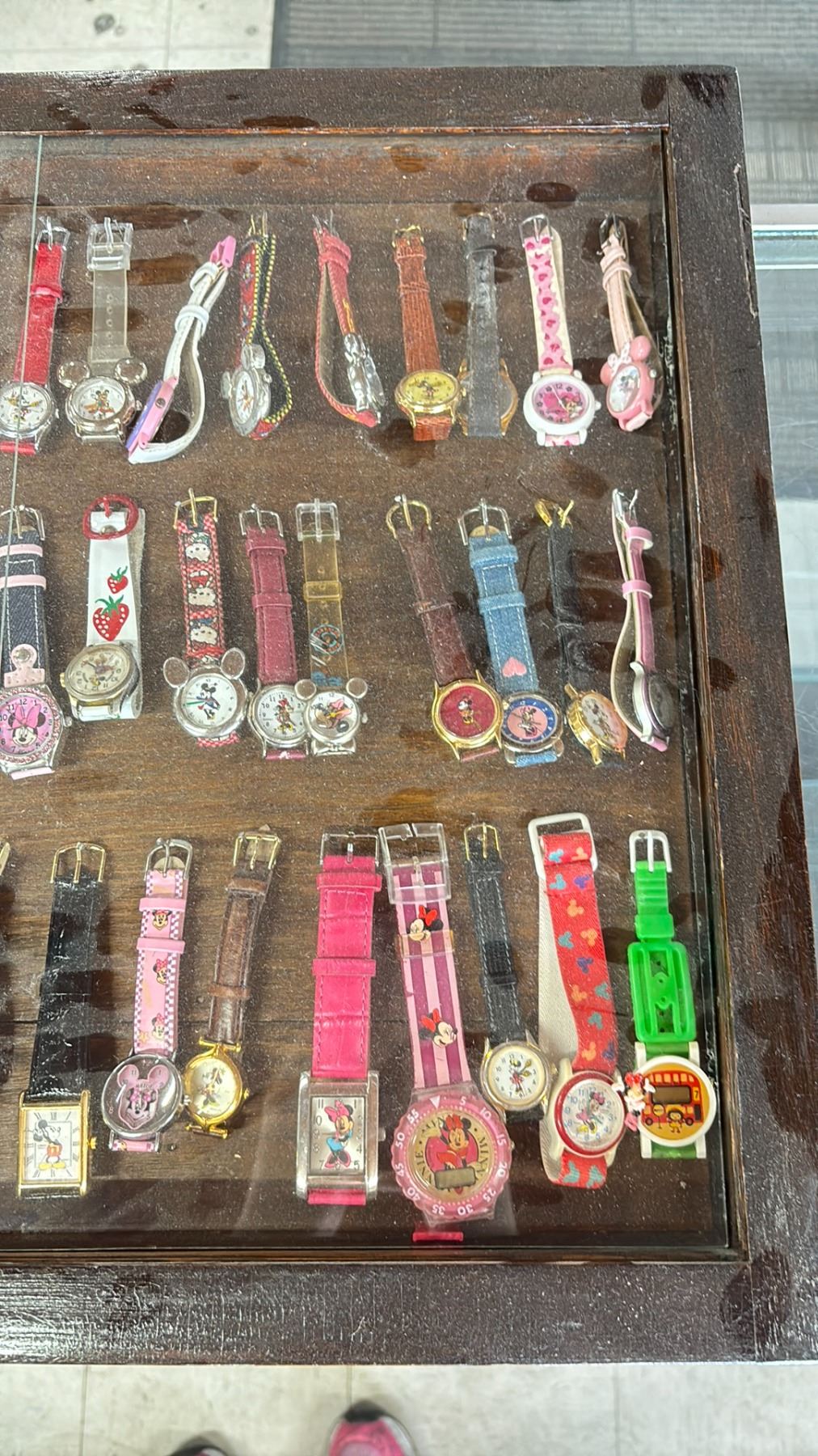 SHADOW BOX WITH ASSORTED DISNEY WATCHES