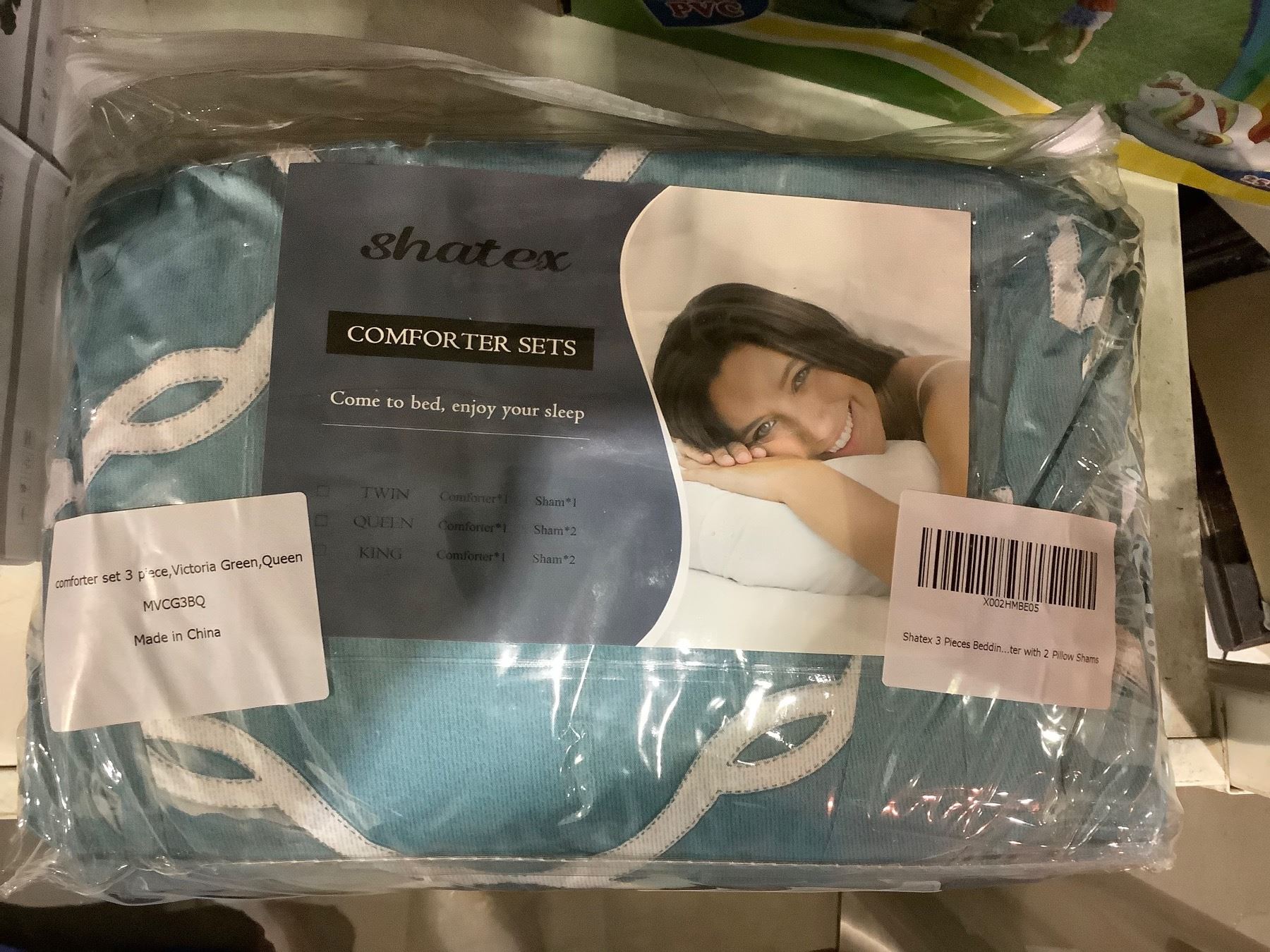 SHATEX BEDDING WITH PILLOW SHAMS VICTORIA GREEN QUEEN SIZE
