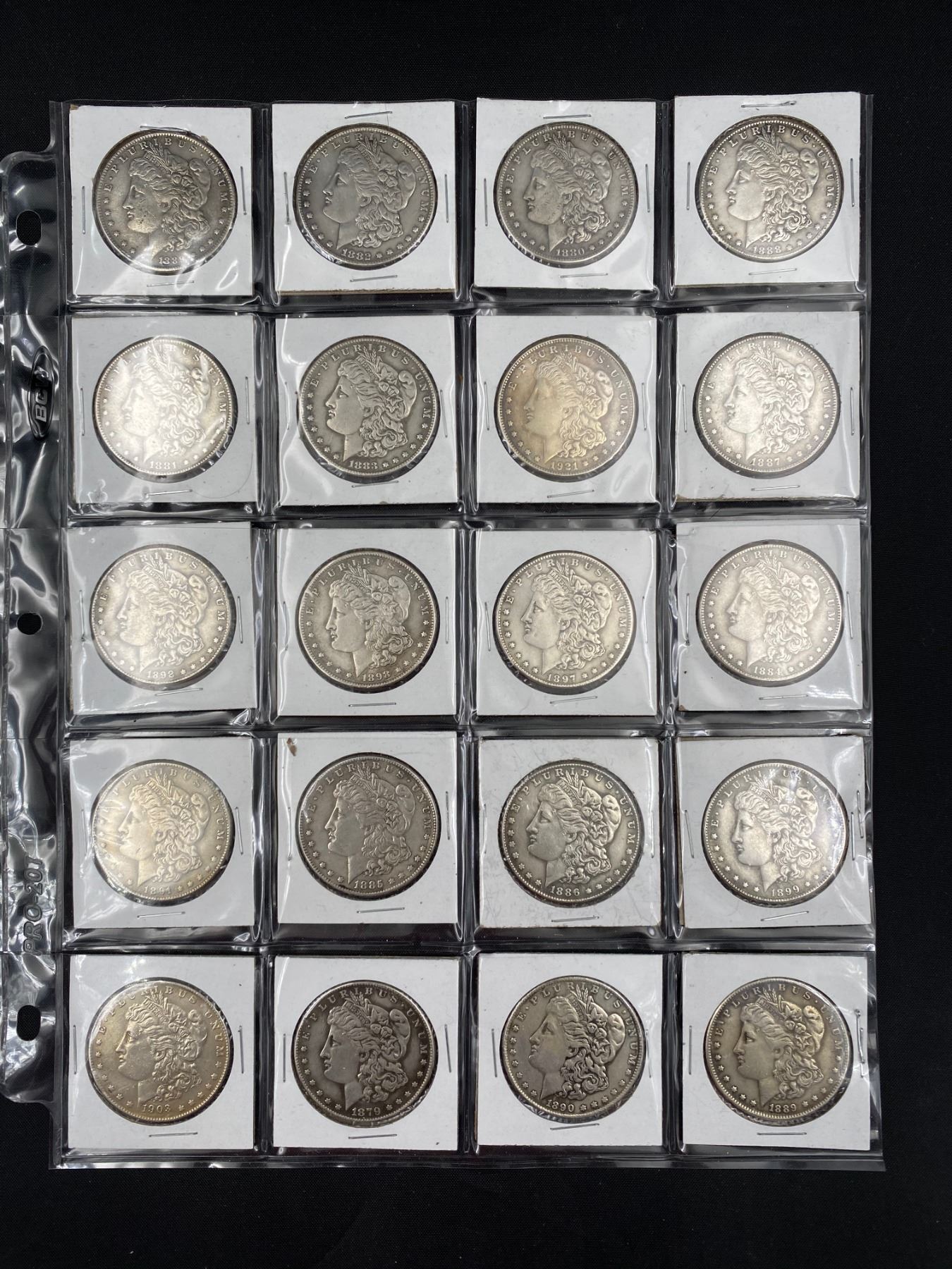 SHEET OF 20 MORGAN SILVER DOLLARS
