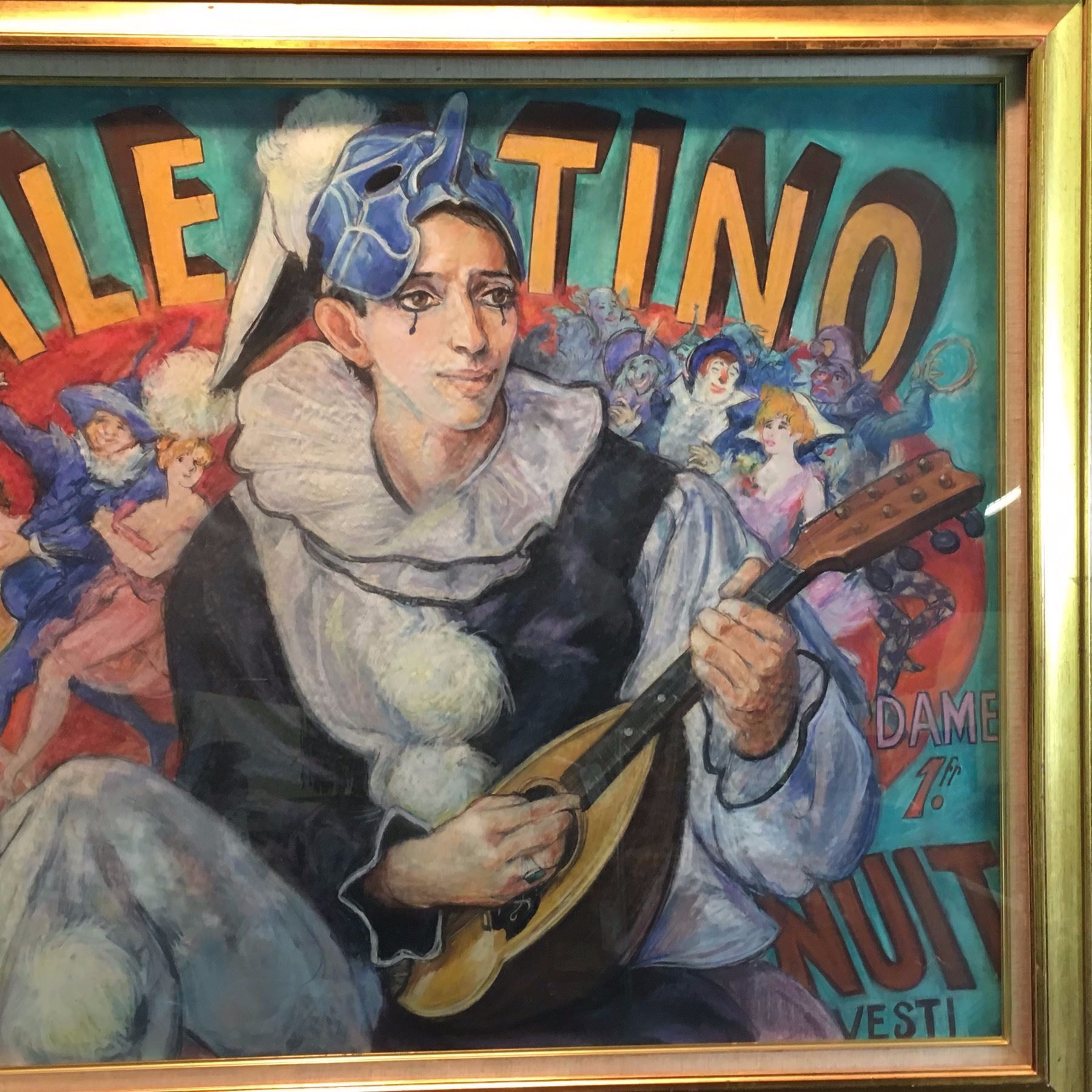 SHELDON C. SCHONEBERG, FRAMED ORIGINAL PASTEL, "VALENTINO", CLOWN PLAYING A LUTE, SIGNED ON LEFT SIDE BY ARTIST, 36'' X 46 1/2''