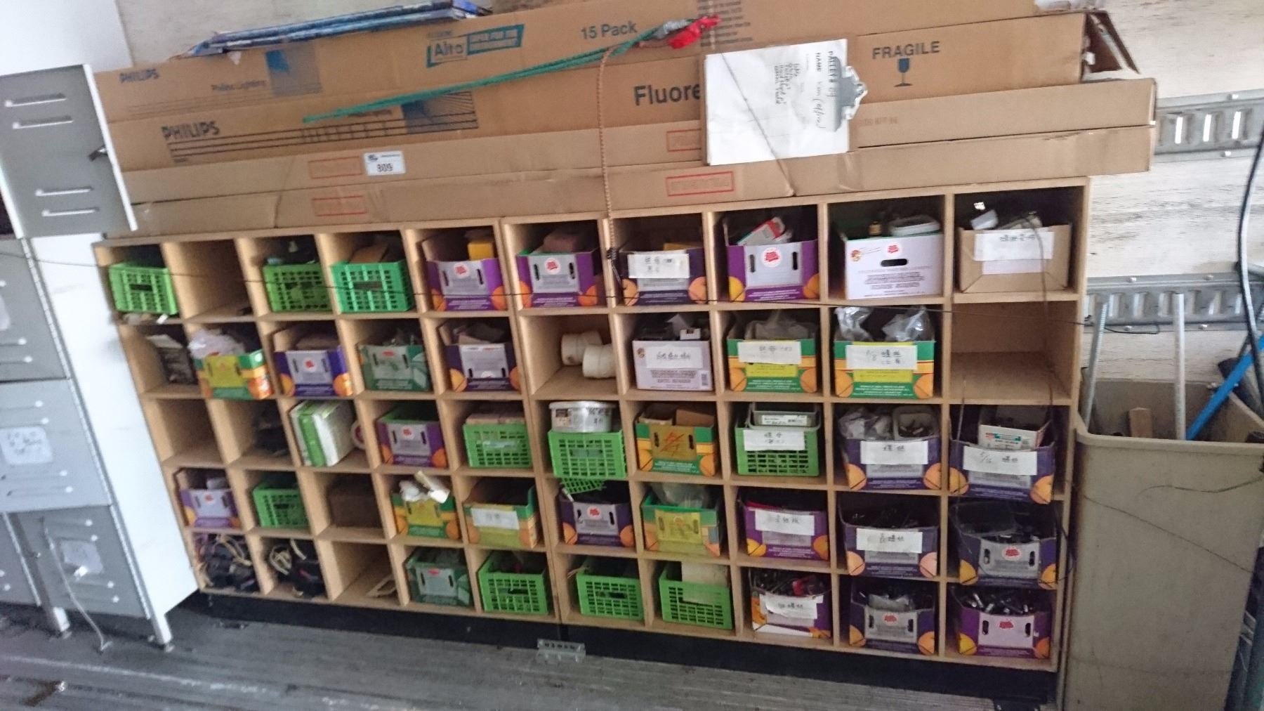 SHELF ASSORTED HARDWARE, LOCKER AND CONTENTS