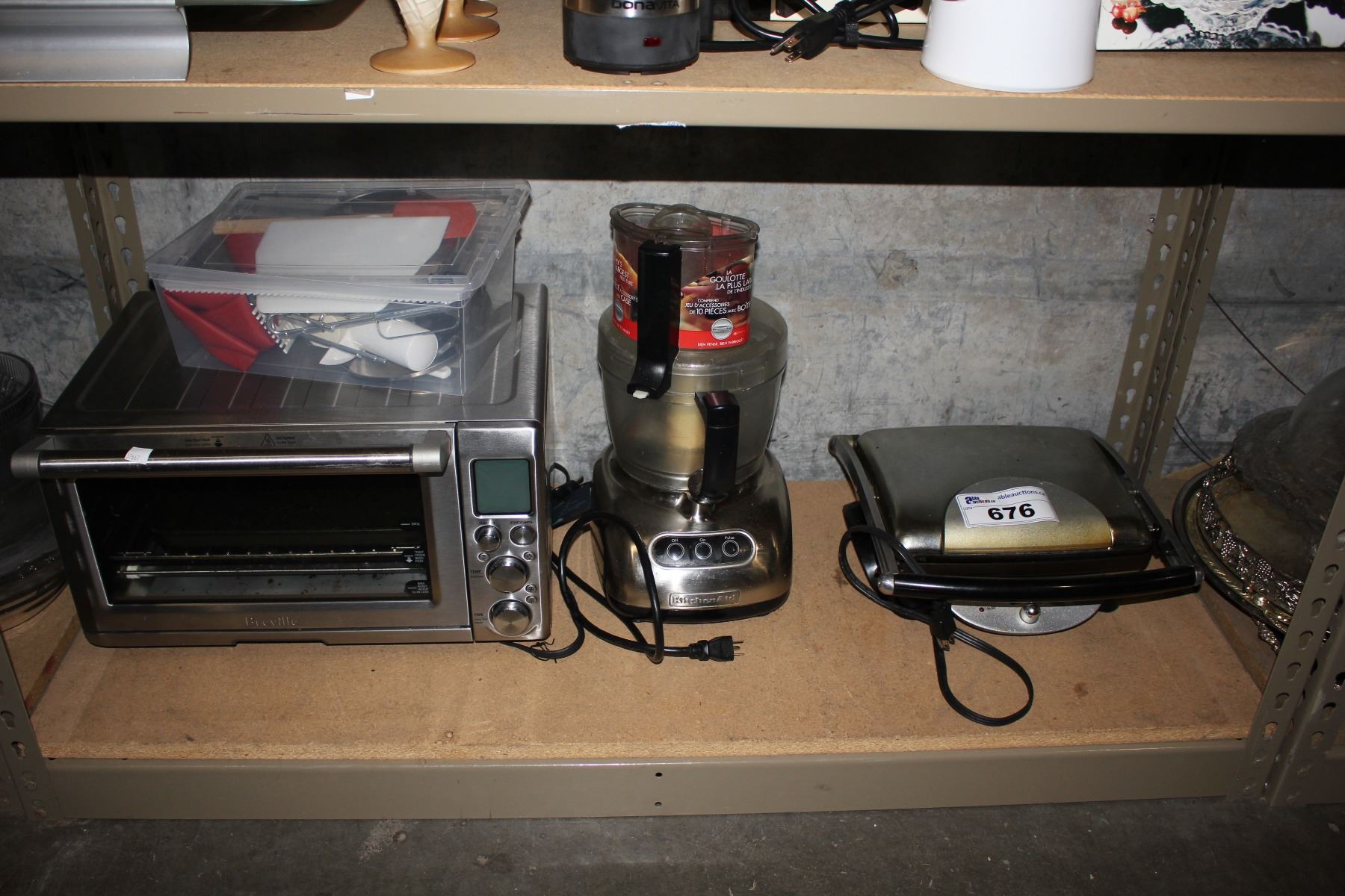SHELF INCLUDING BREVILLE TOASTER OVEN, GRILL, FOOD PROCESSOR AND MORE