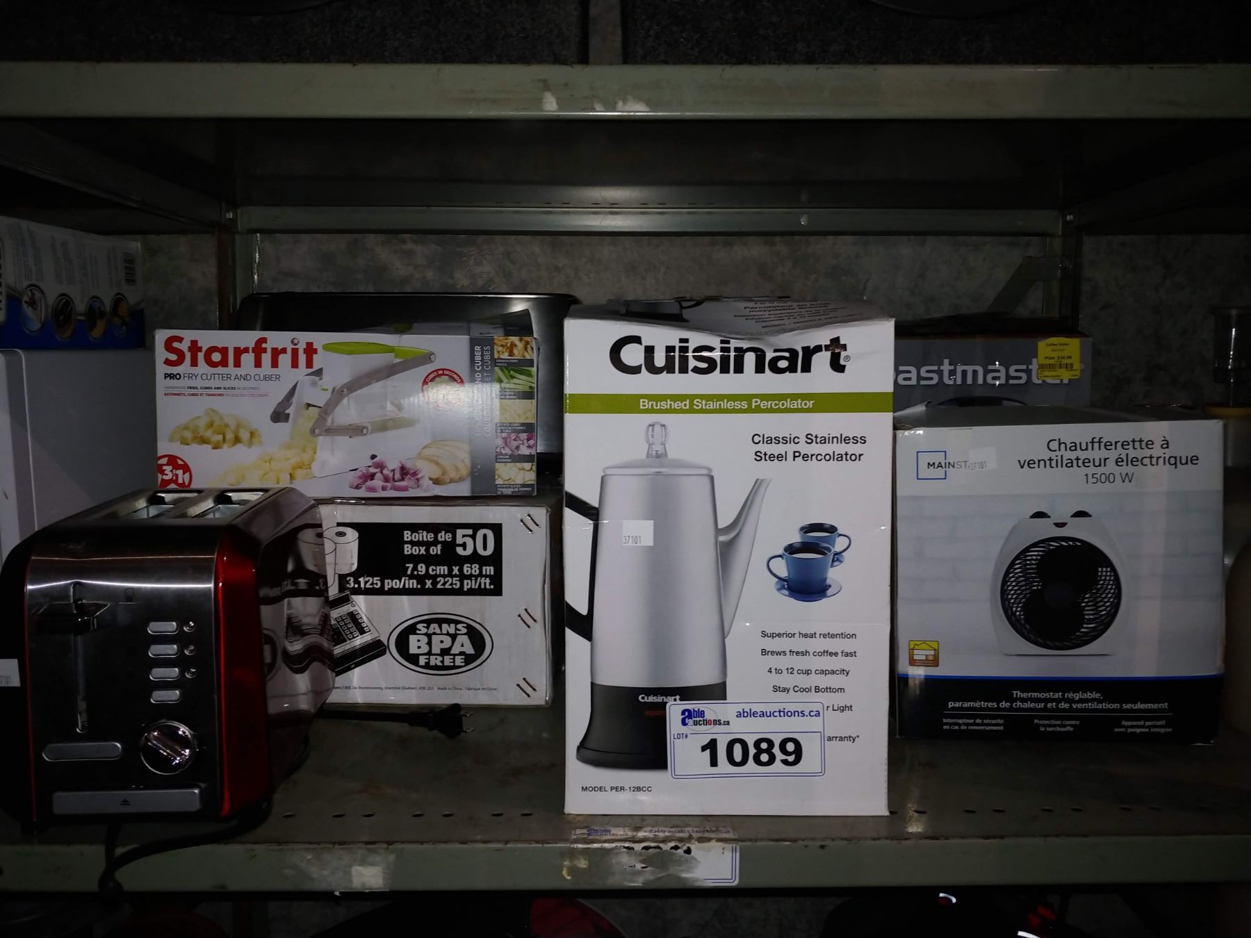 SHELF INCLUDING KETTLE, FAN, TOASTER AND MORE