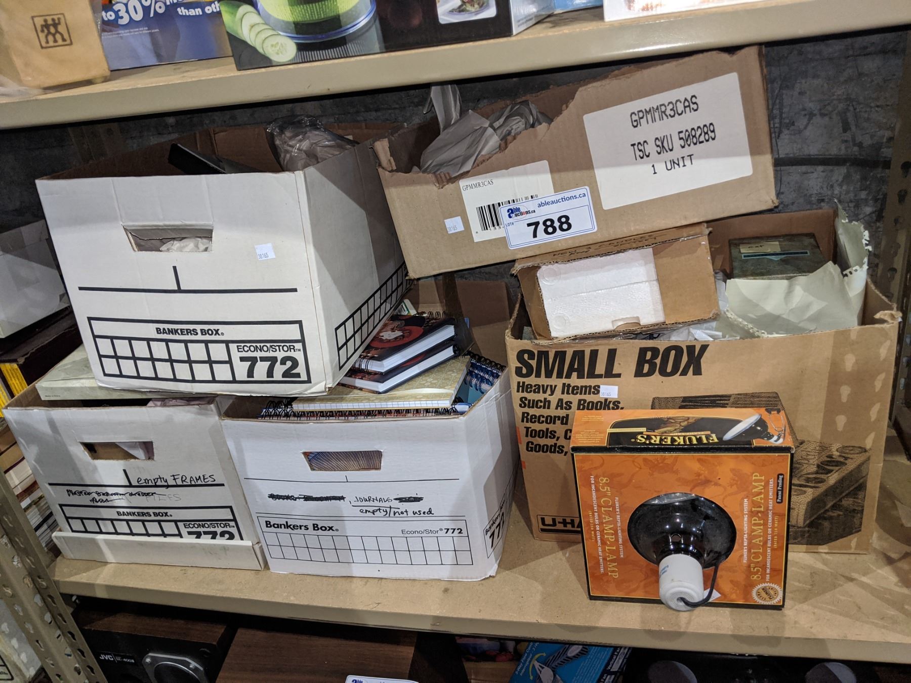 SHELF INCLUDING NOTEBOOKS, PHOTO FRAMES, REPTILE LAMP, DECOR AND MORE
