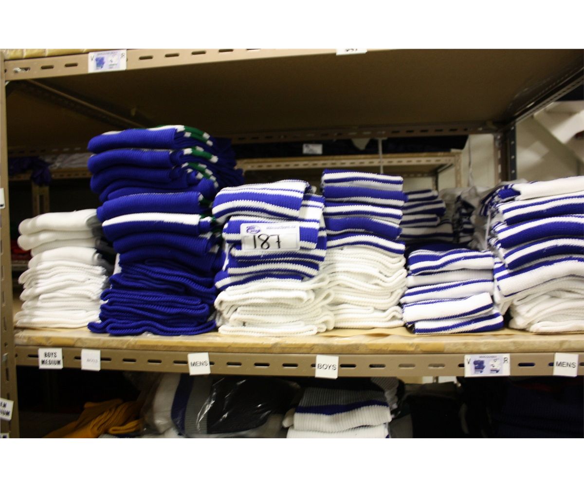 SHELF LOAD OF HOCKEY SOCKS; ONE PRICE FOR ENTIRE SHELF.