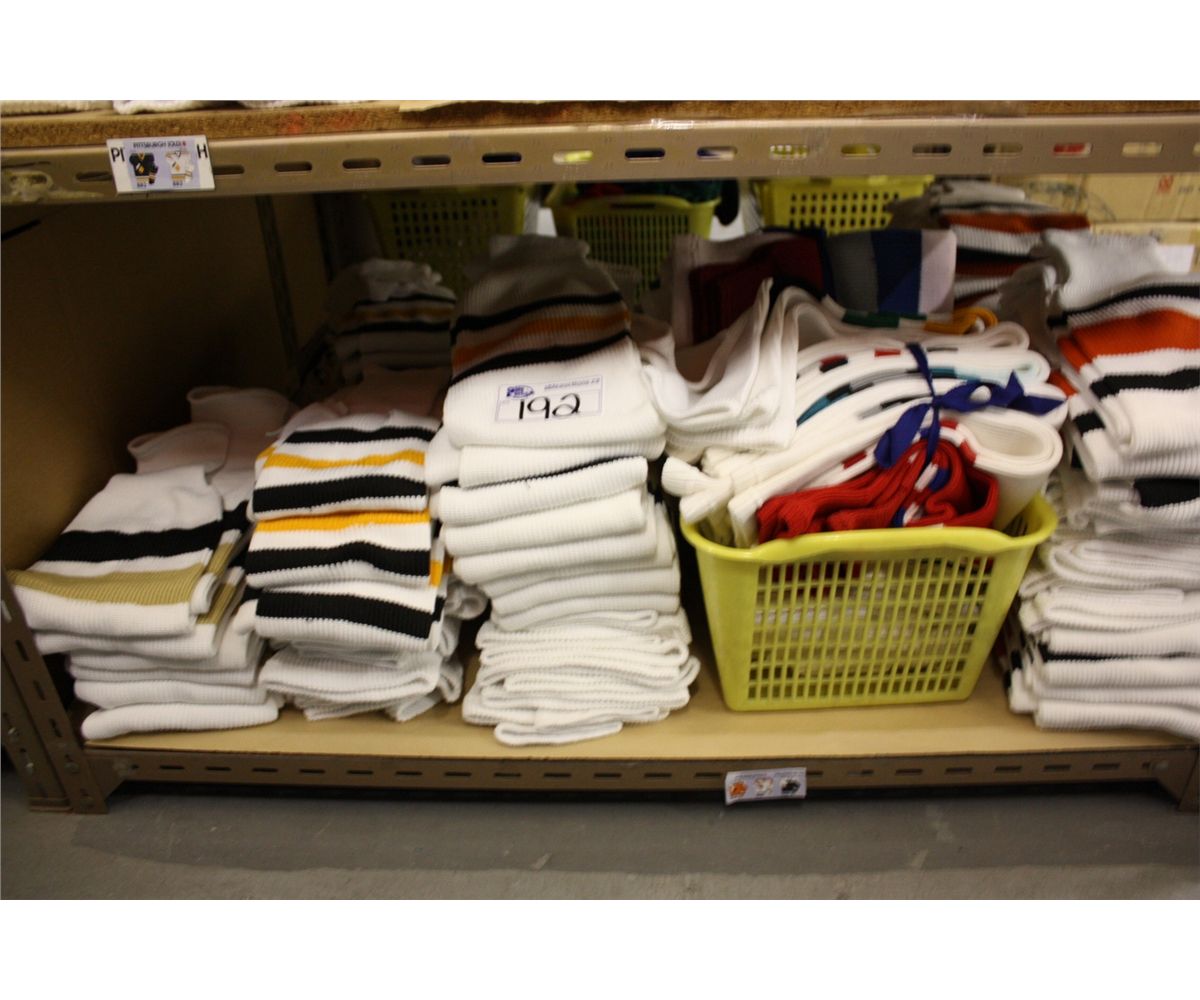 SHELF LOAD OF HOCKEY SOCKS; ONE PRICE FOR ENTIRE SHELF.