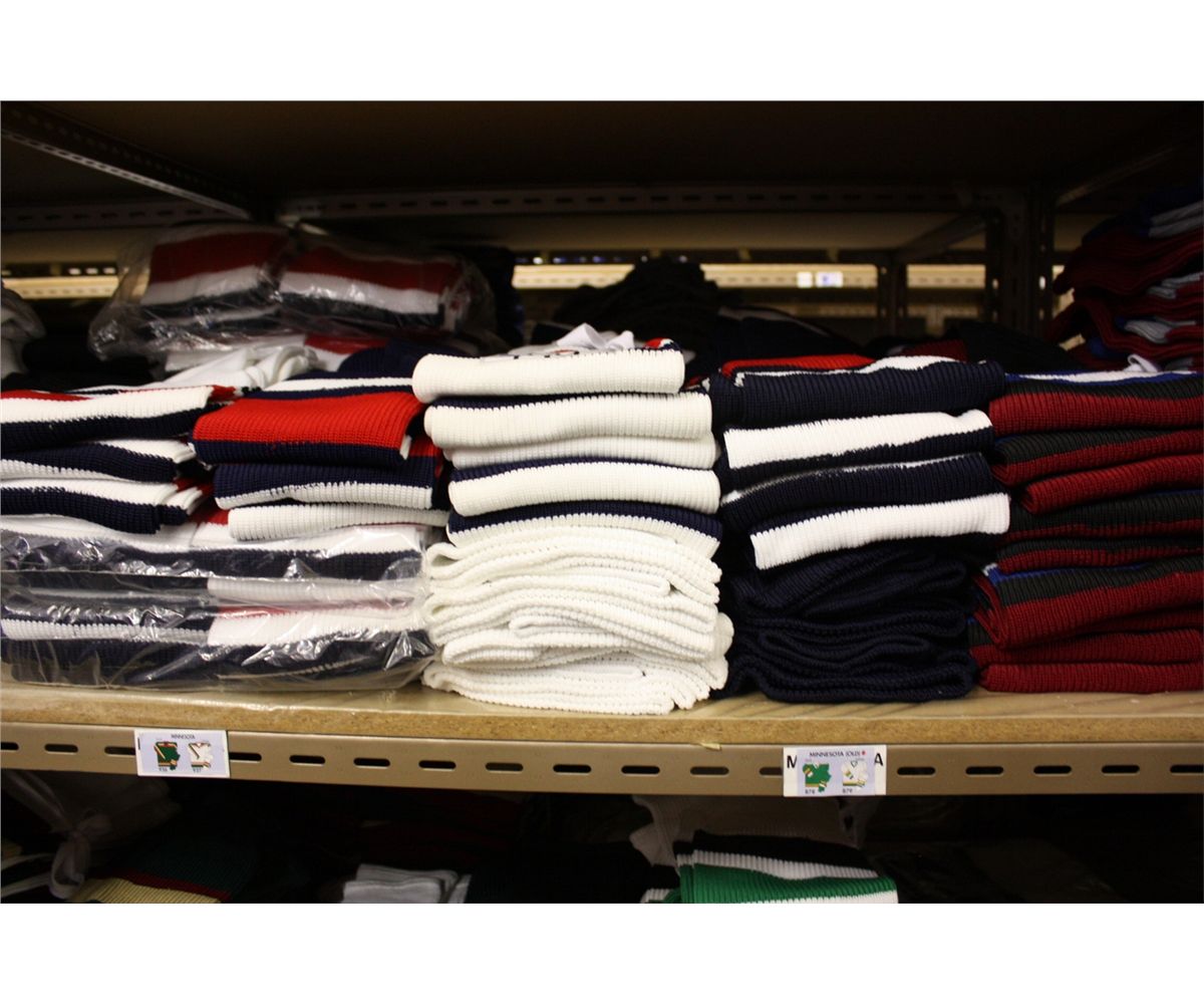 SHELF LOAD OF HOCKEY SOCKS; ONE PRICE FOR ENTIRE SHELF.
