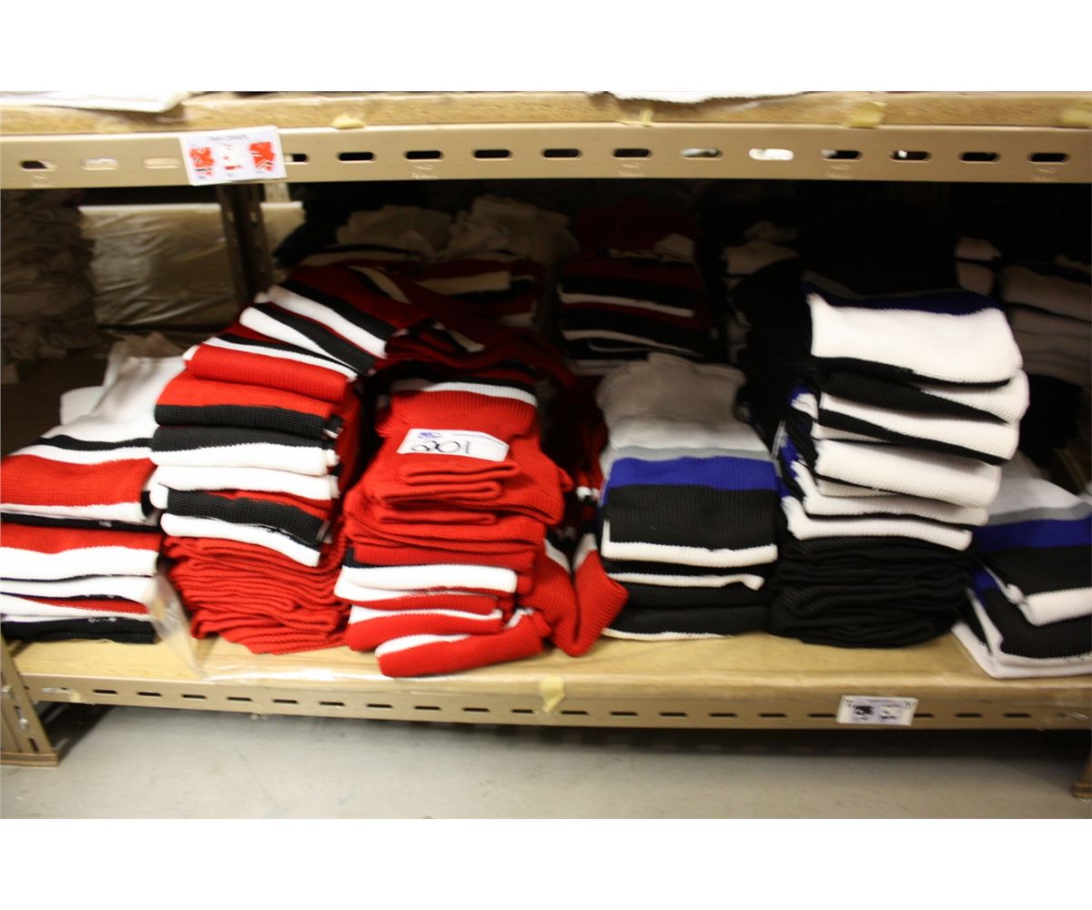 SHELF LOAD OF HOCKEY SOCKS; ONE PRICE FOR ENTIRE SHELF.