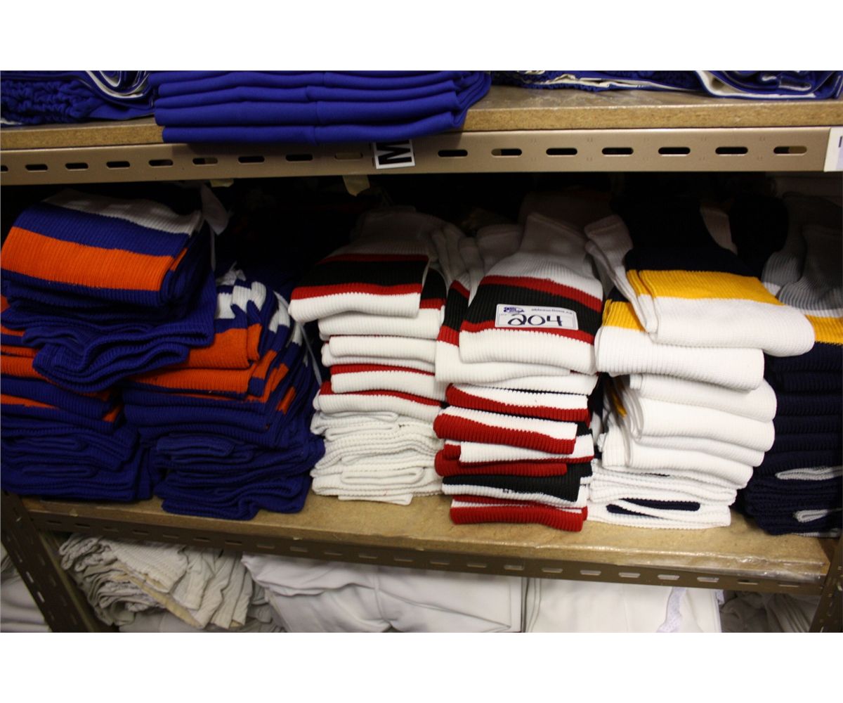 SHELF LOAD OF HOCKEY SOCKS; ONE PRICE FOR ENTIRE SHELF.