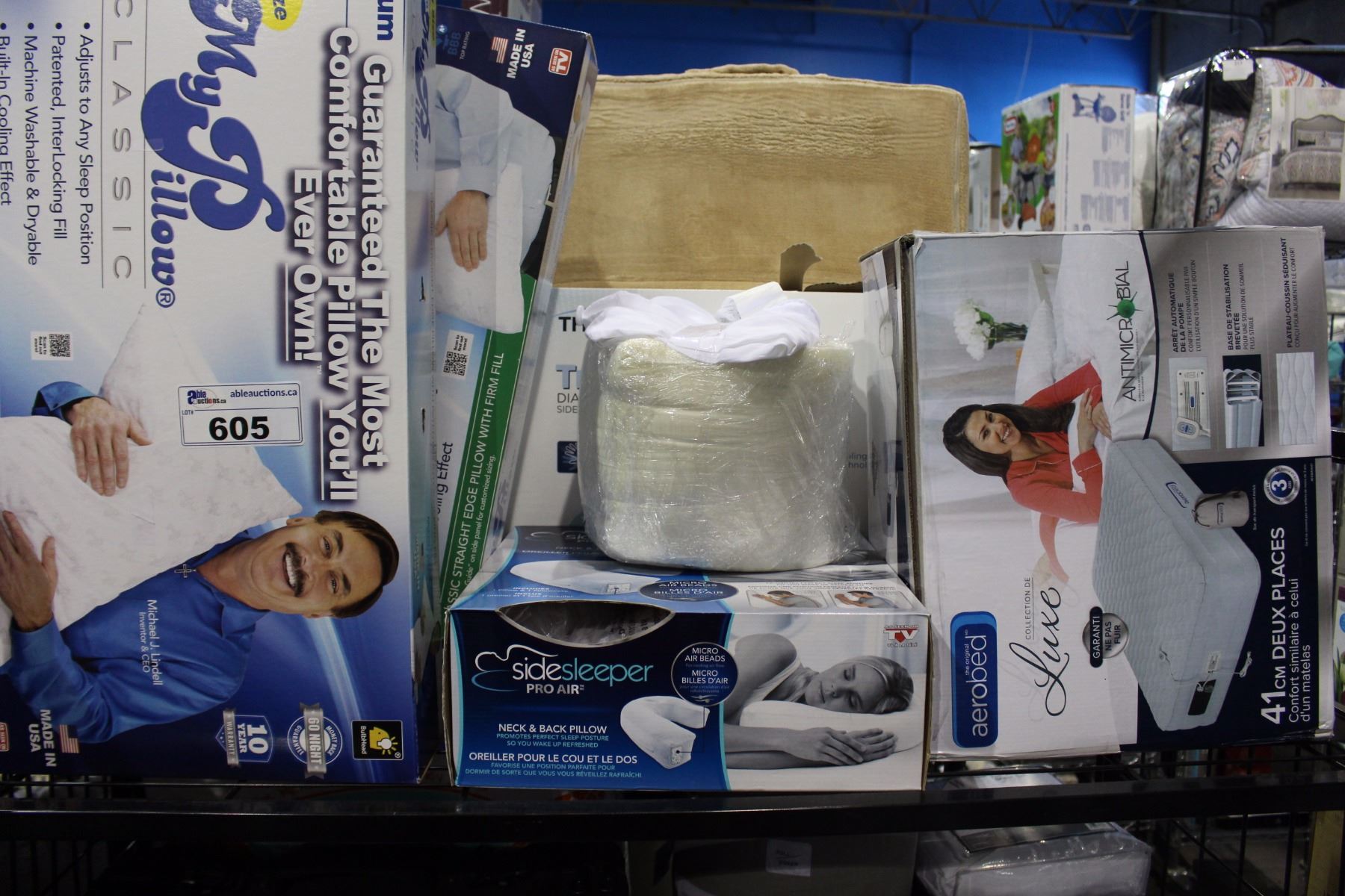 SHELF LOT - 5 NEW PILLOWS IN BOX , BRAND NEW AEROBED IN A BOX