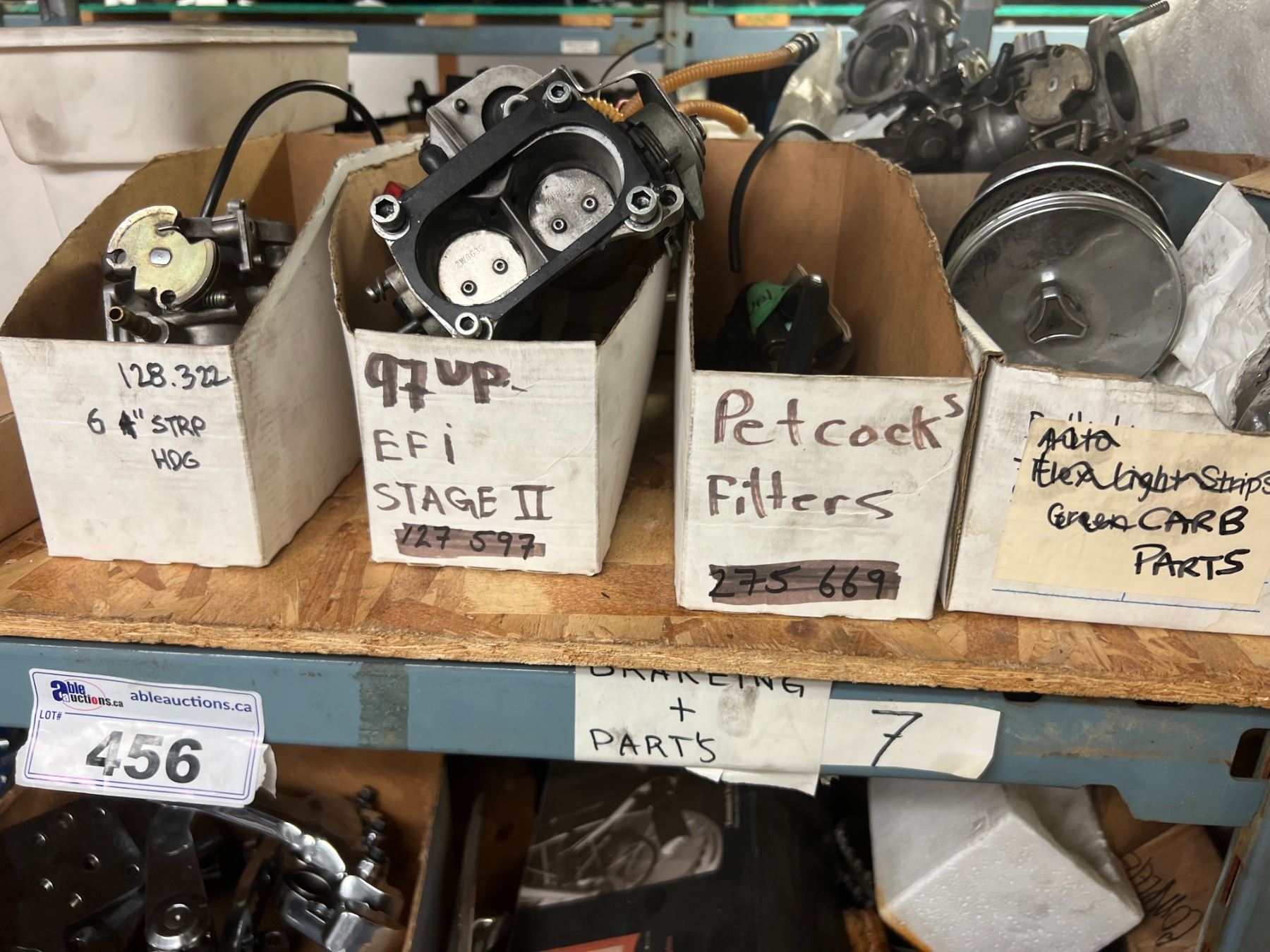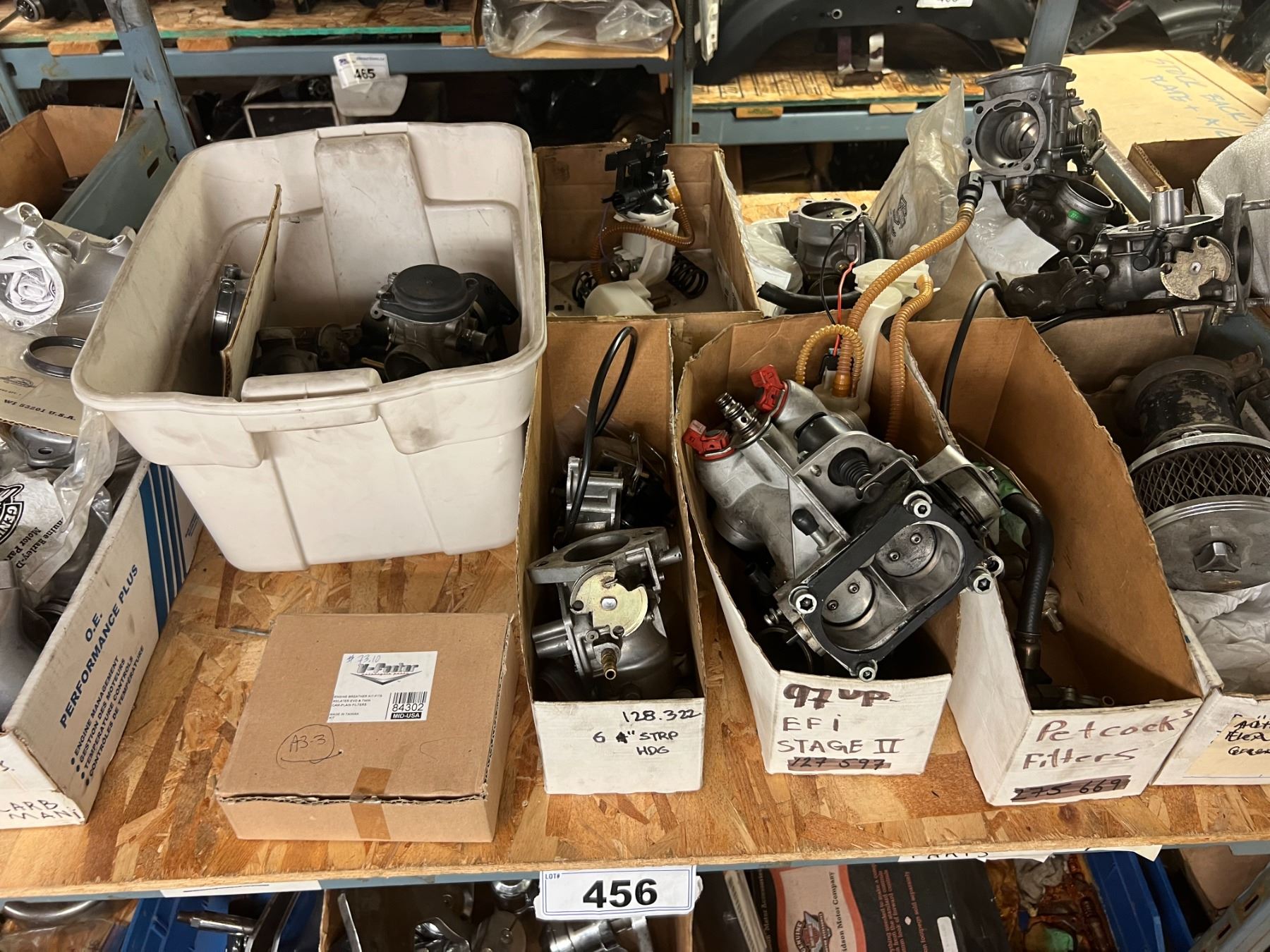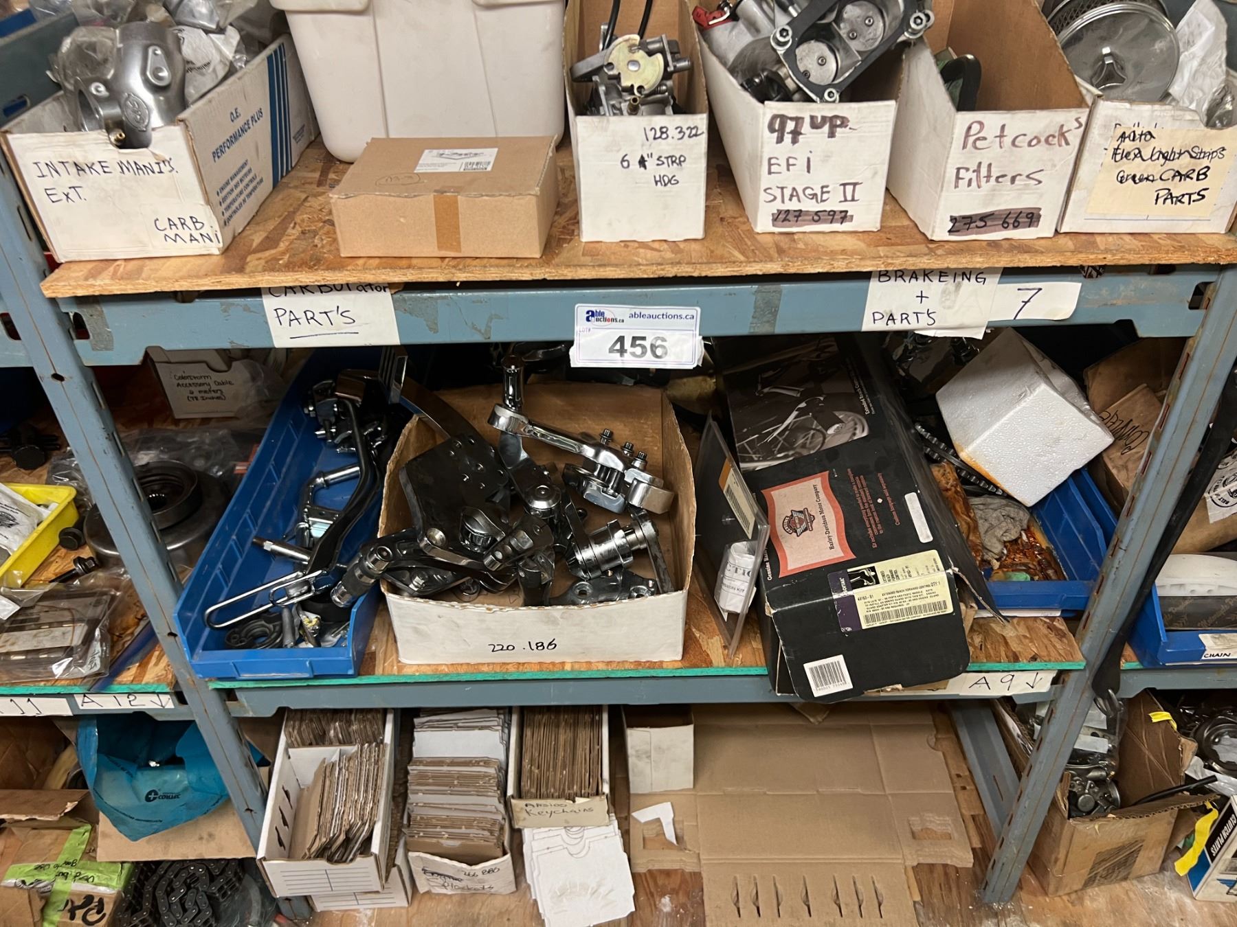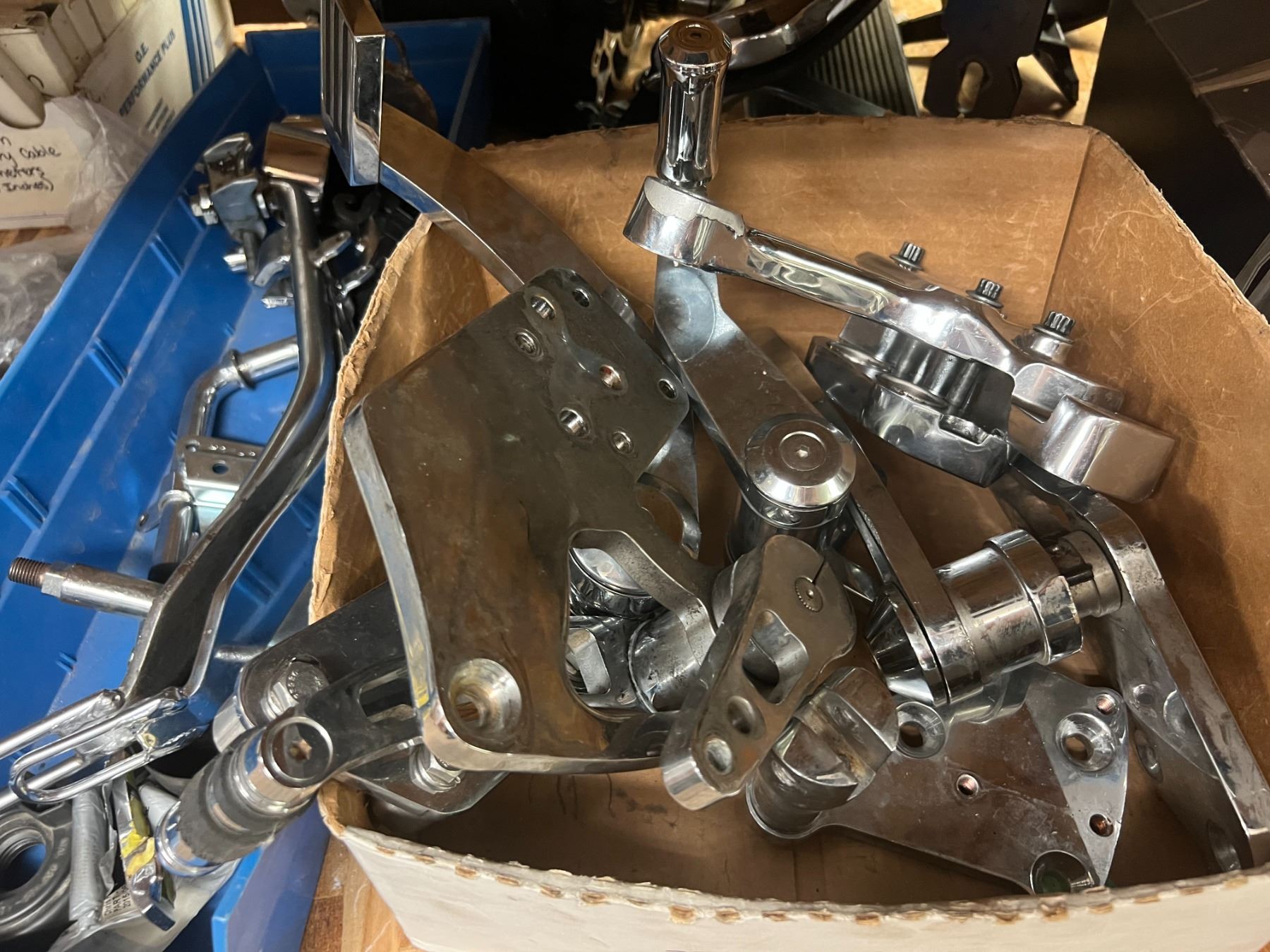 SHELF LOT BRAKE COMPONENTS, BRAKE CYLINDERS, BRAKE PEDALS, CARBURETOR PARTS, INTAKE MANIFOLDS, ETC