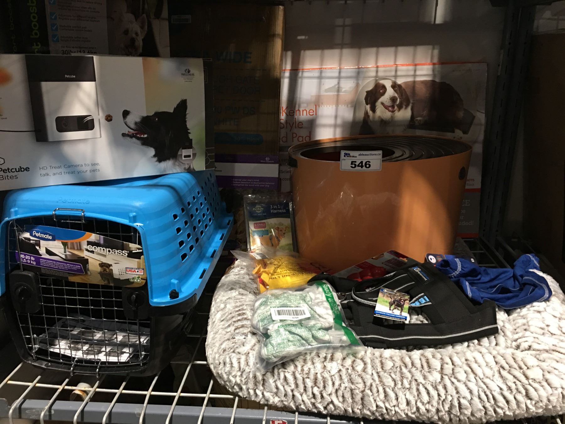 SHELF LOT FULL OF ASSORTED DOG ACCESSORIES