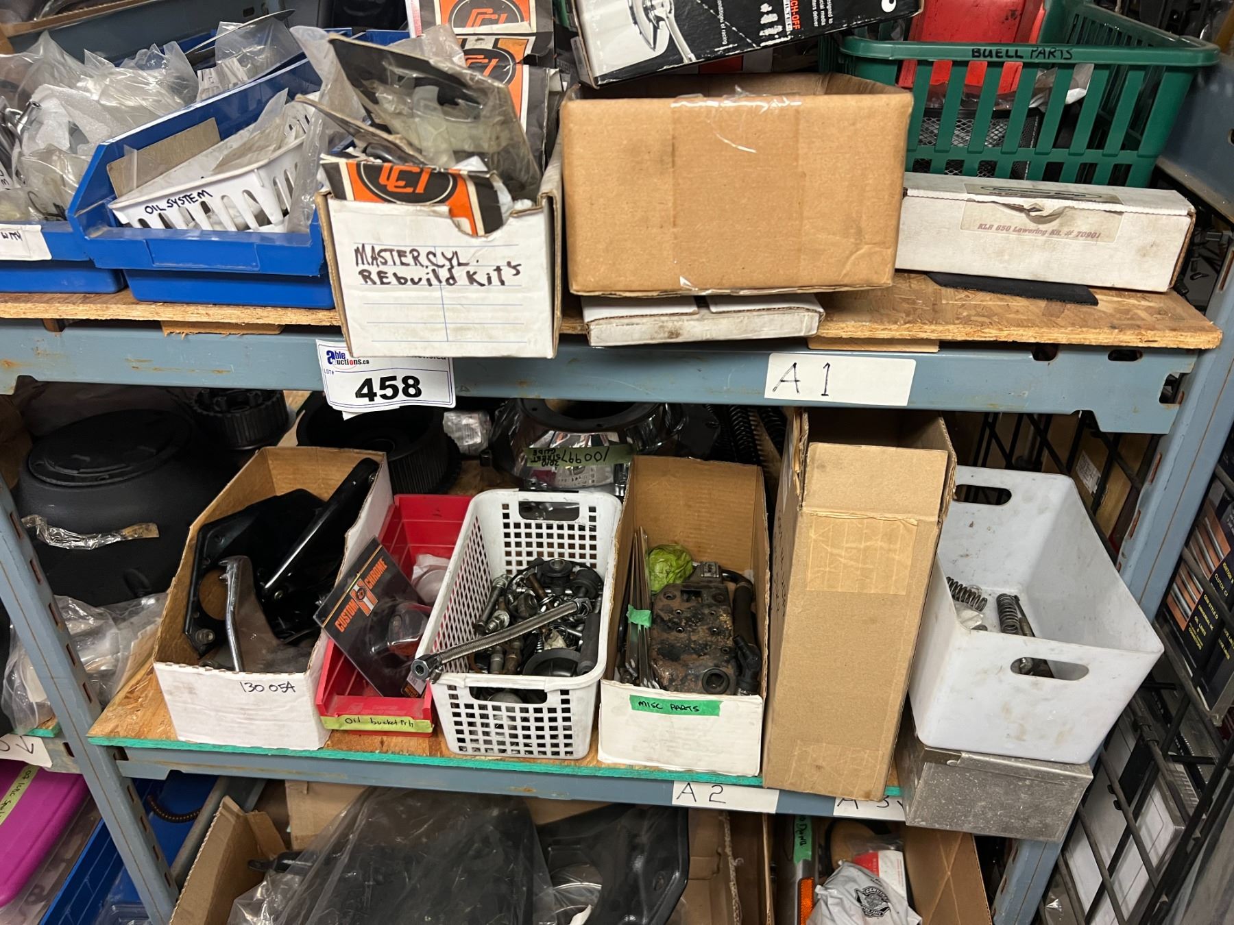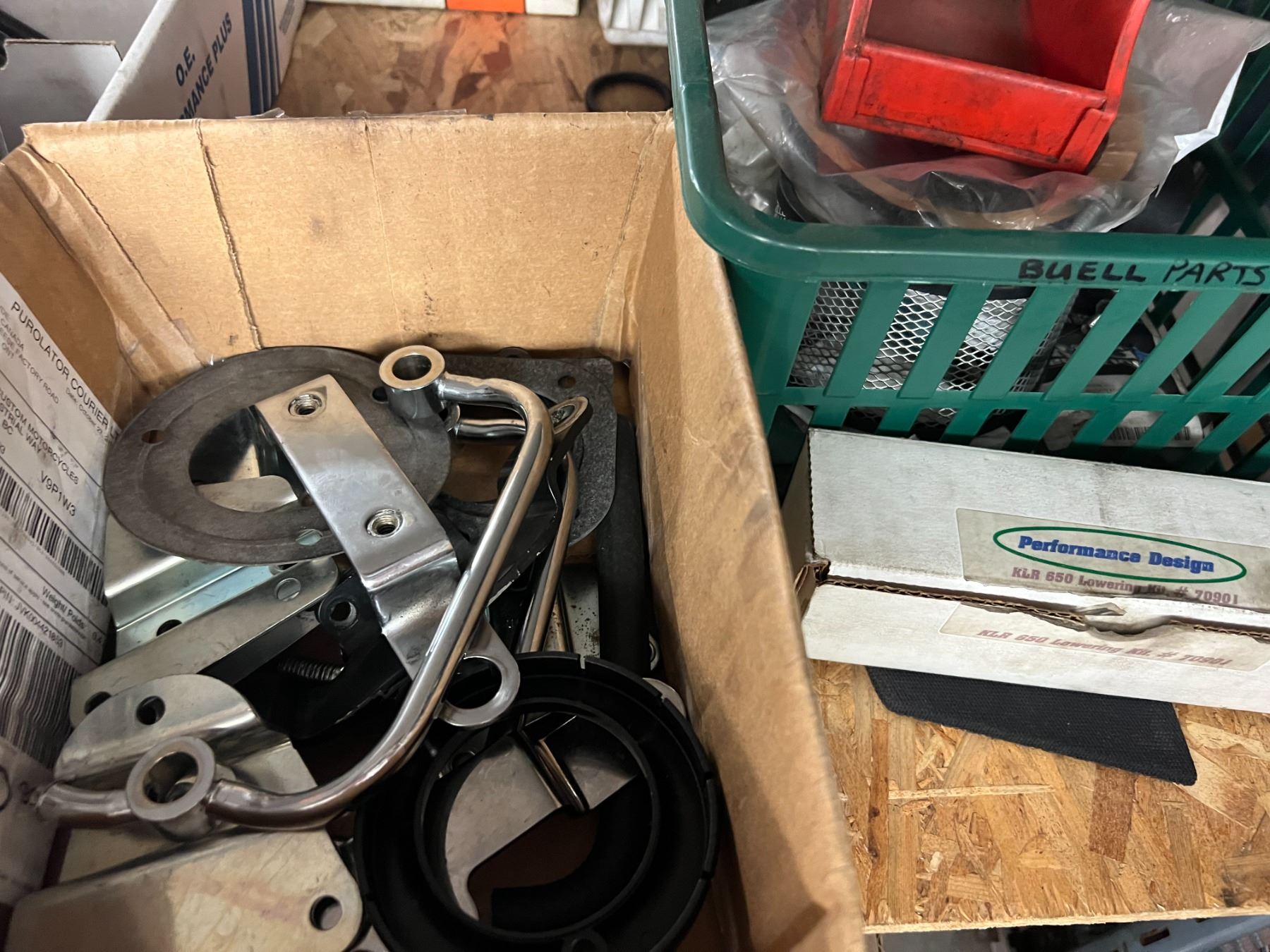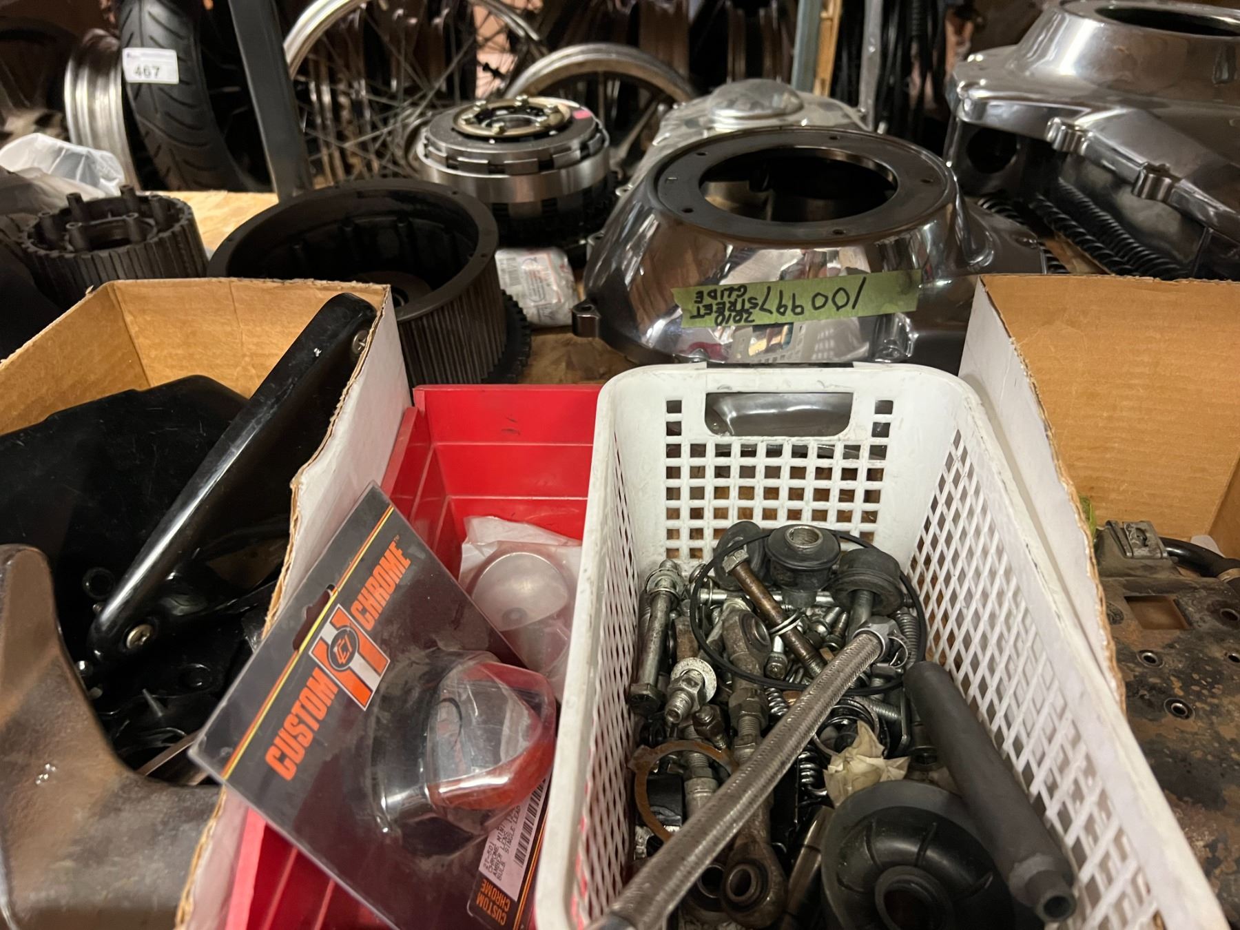 SHELF LOT HARLEY PARTS, CASING COVERS, MASTER CYLINDER REBUILD KITS, AIR INTAKE, WINDSHIELDS, ETC