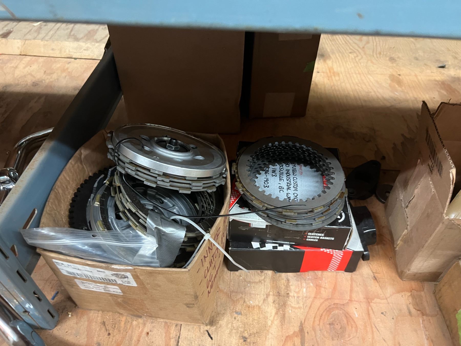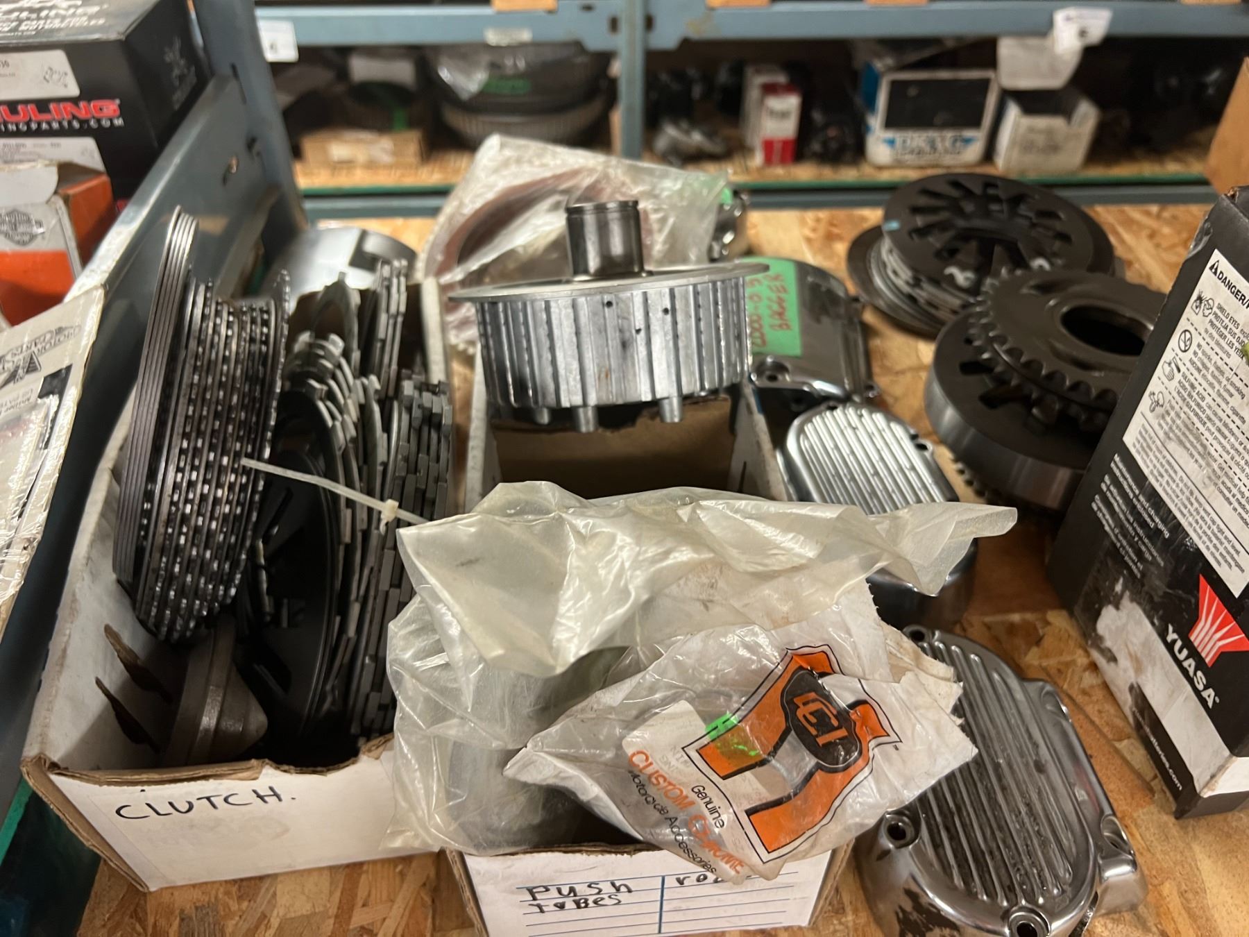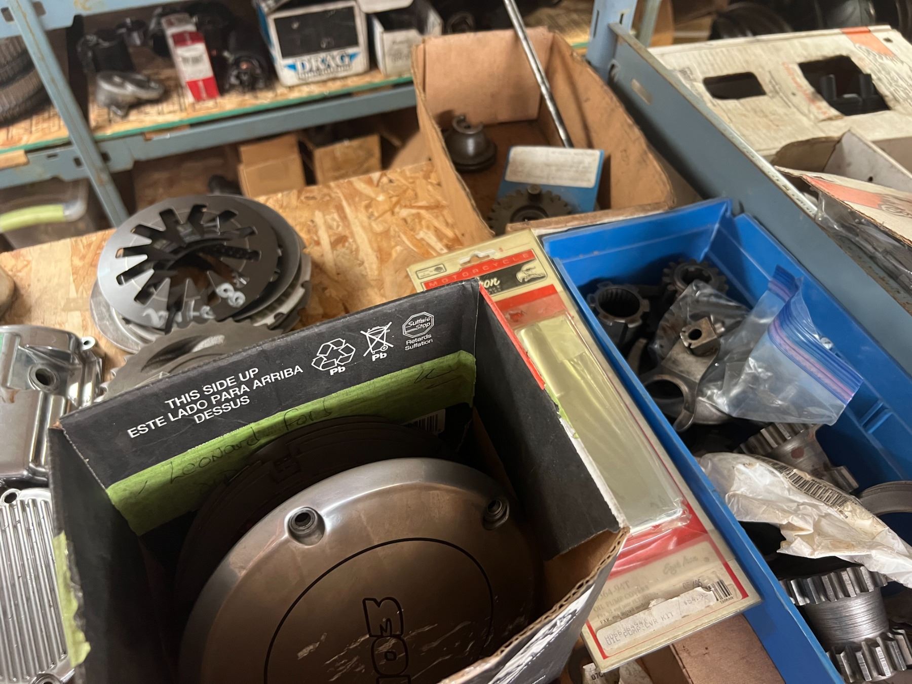 SHELF LOT HARLEY TRANSMISSION COMPONENTS, CLUTCH COMPONENTS, ETC