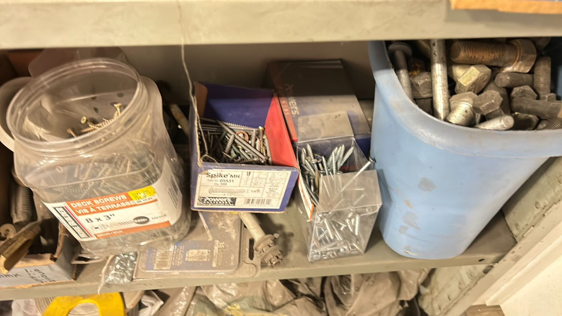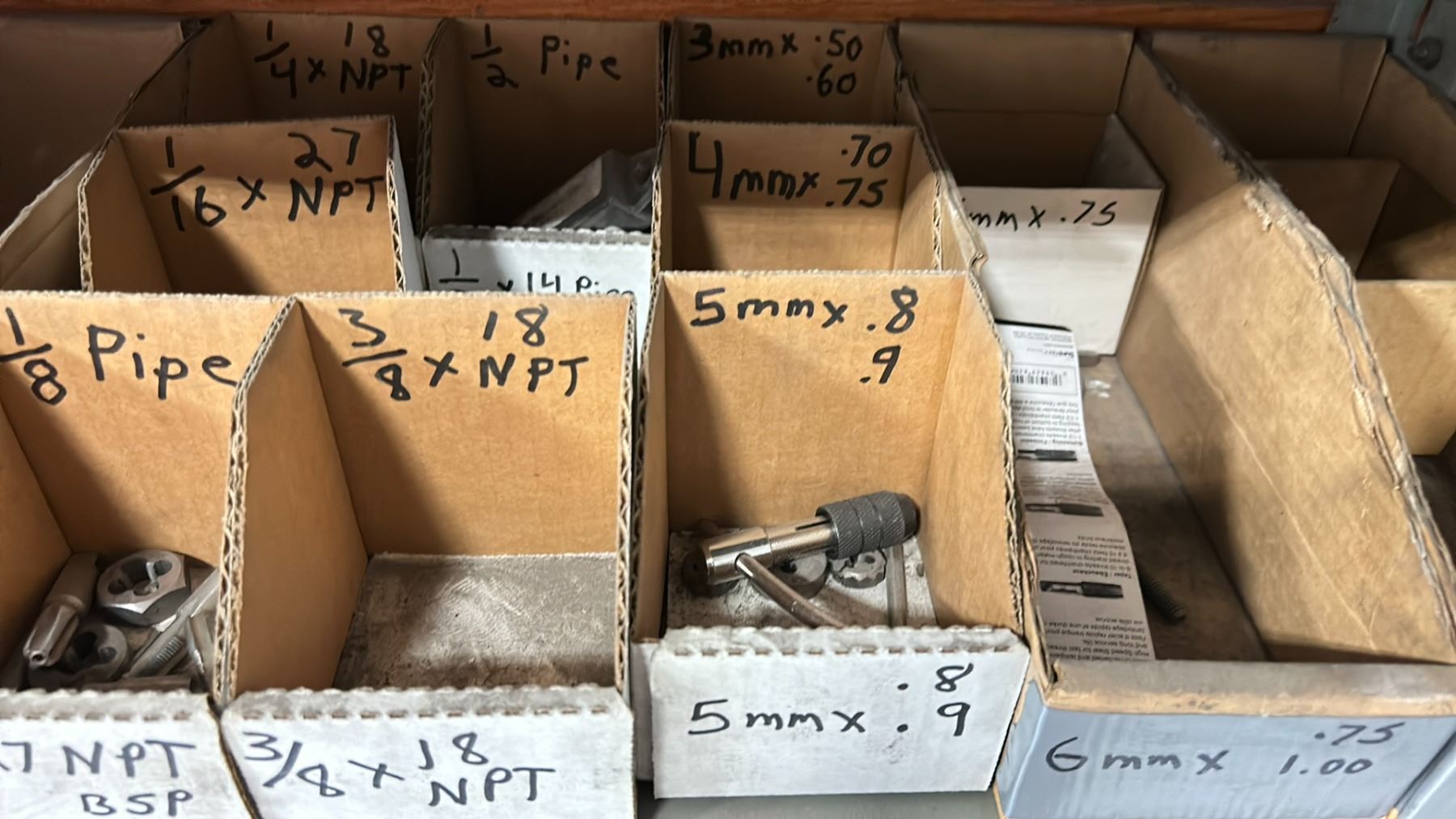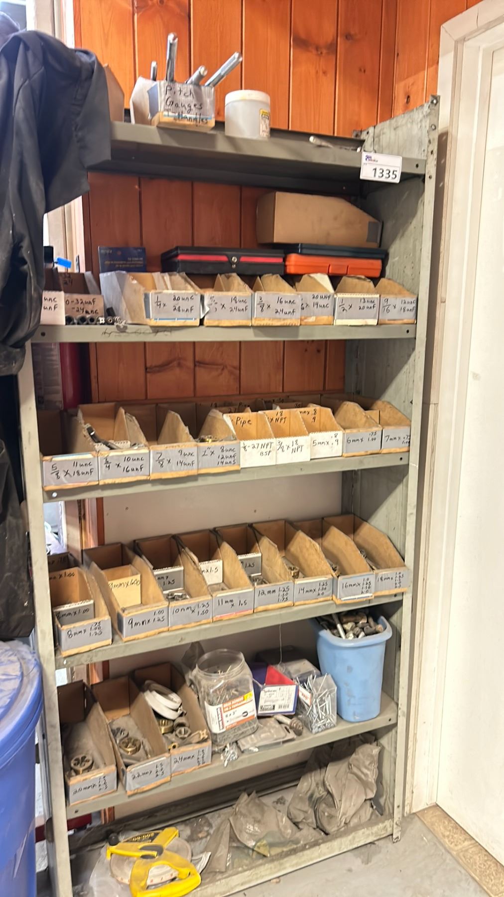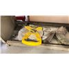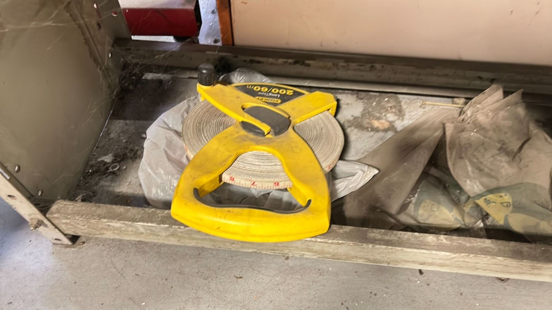 SHELF LOT INC SHELF. LARGE COLLECTION OF METRIC AND SAE TAPS AND DIES, 200' TAPE, ETC