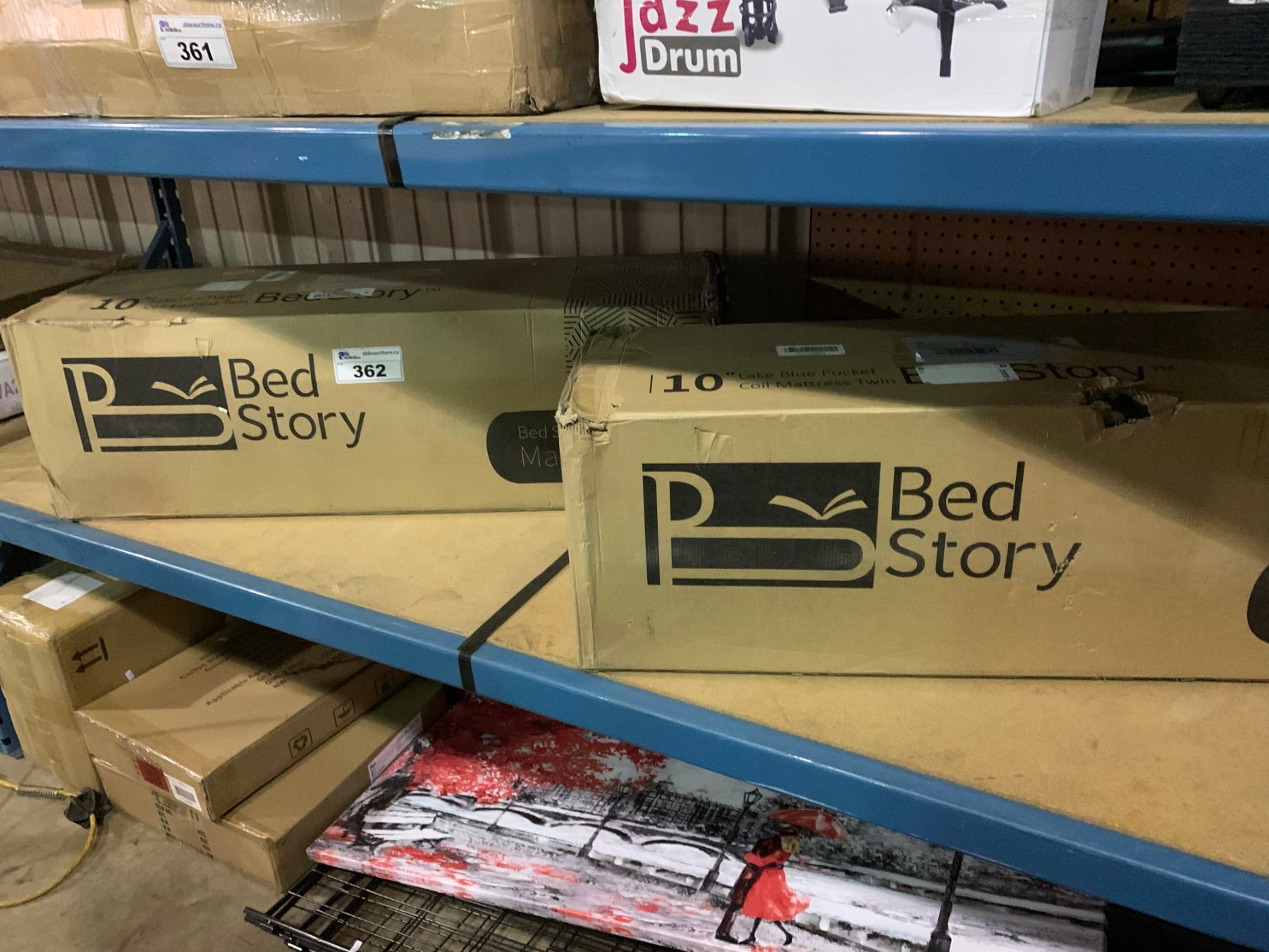 SHELF LOT INCLUDING ; 2 - BEDSTORY 10" LAKE BLUE POCKET COIL MATTRESS (TWIN)