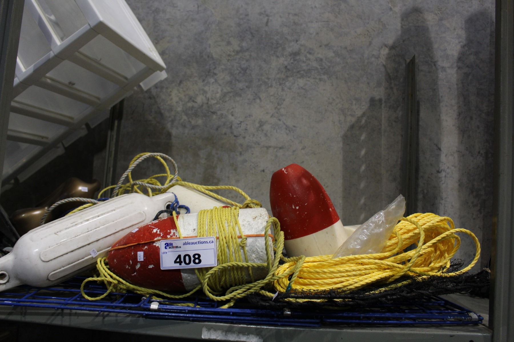 SHELF LOT INCLUDING 2 CRAB TRAPS AND MISC BOATING GEAR