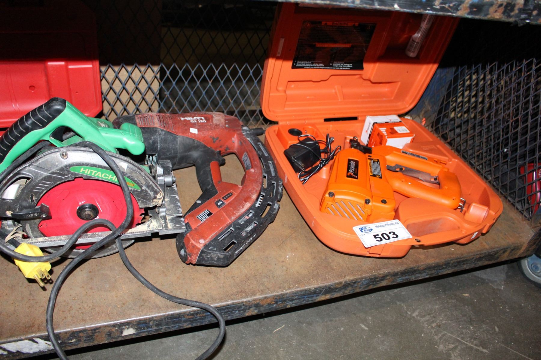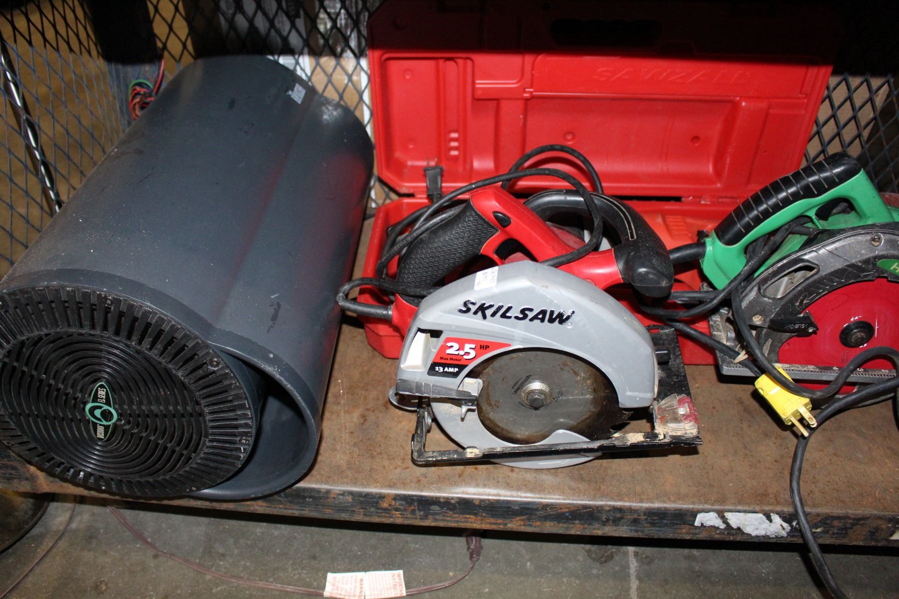 SHELF LOT INCLUDING CIRCULAR SAW, NAIL GUN AND MORE
