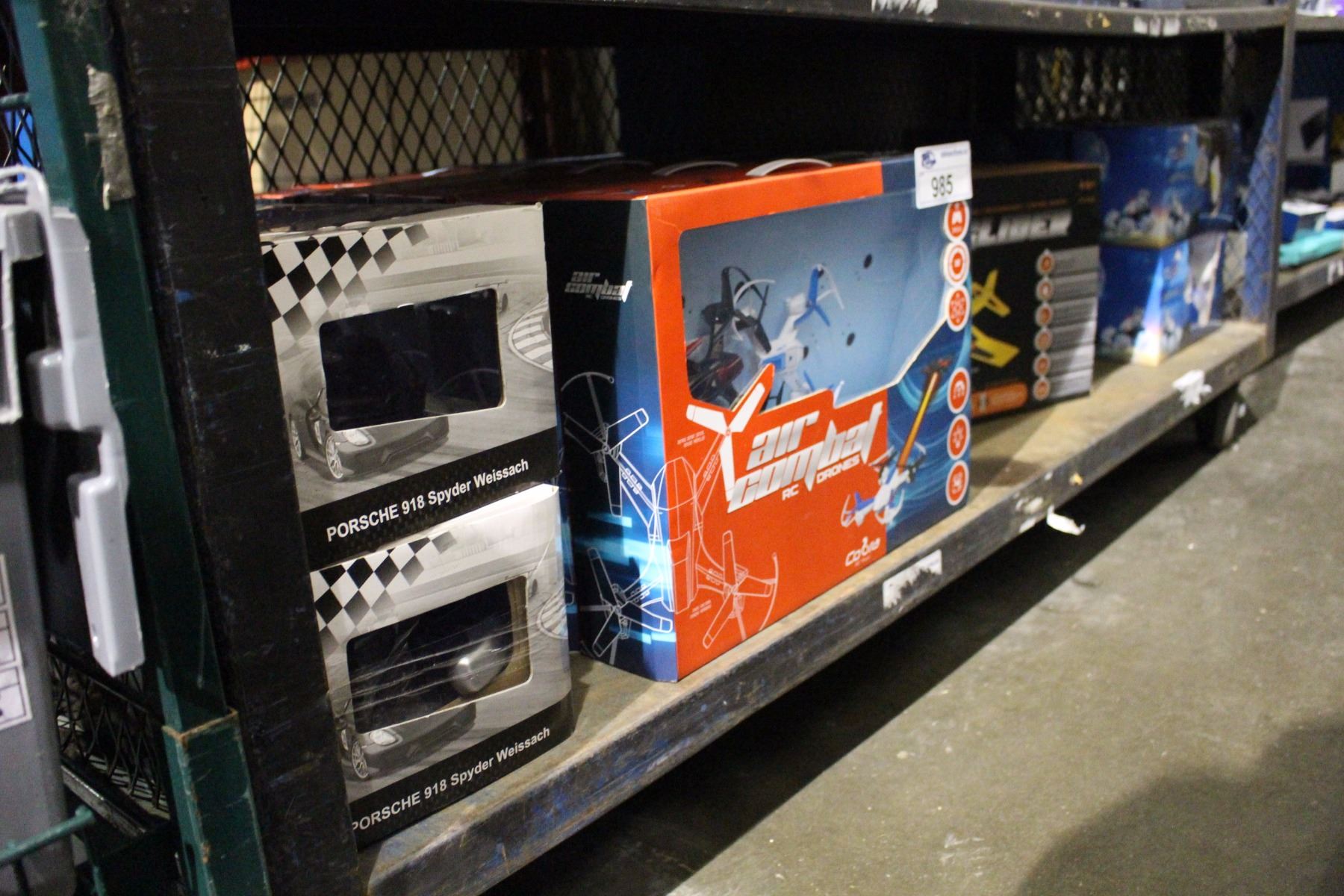 SHELF LOT INCLUDING DRONES, GLIDERS, CARS AND MORE