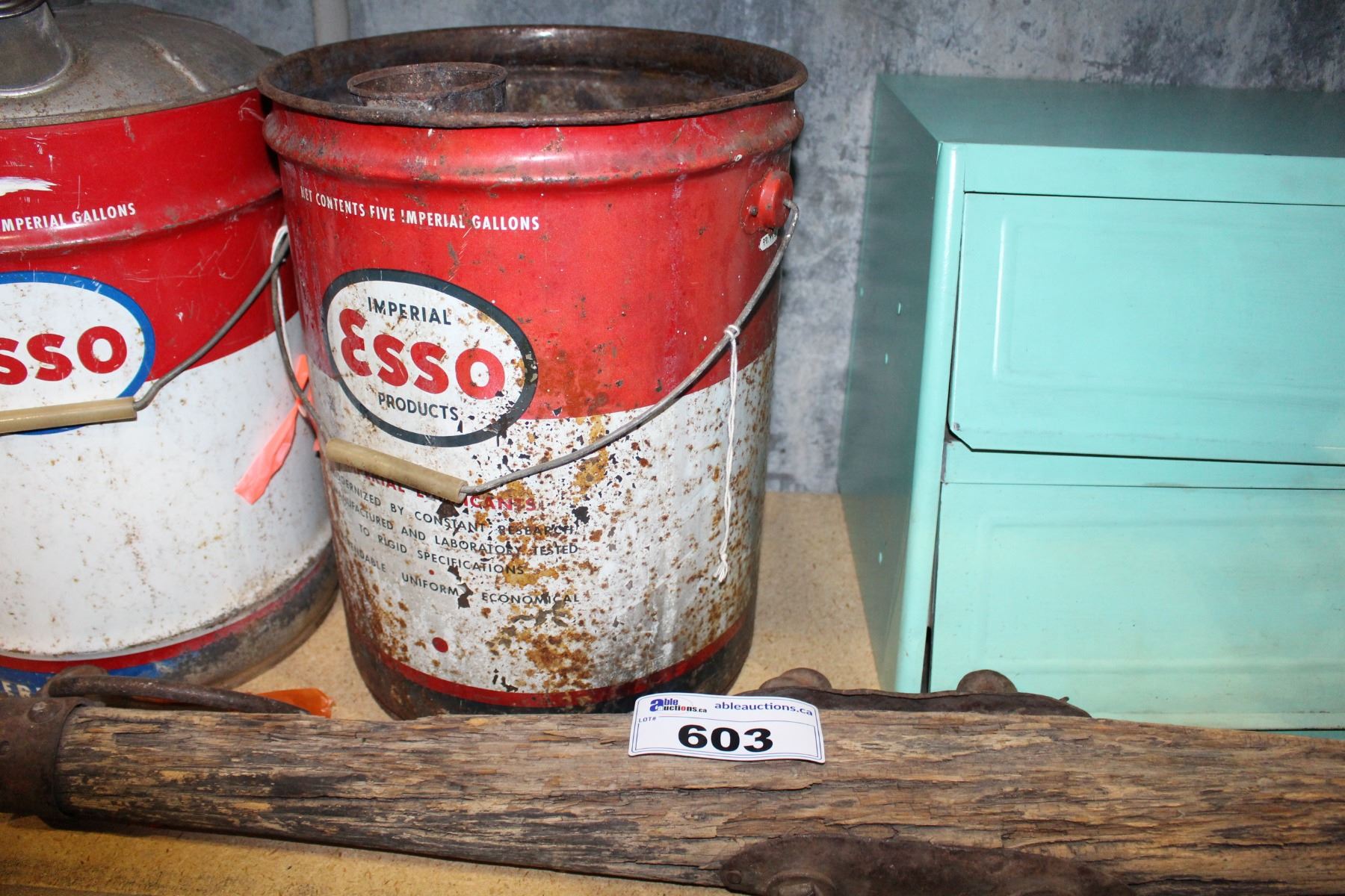 SHELF LOT INCLUDING ESSO TINS, TURQUOISE KITCHEN BOX AND MORE