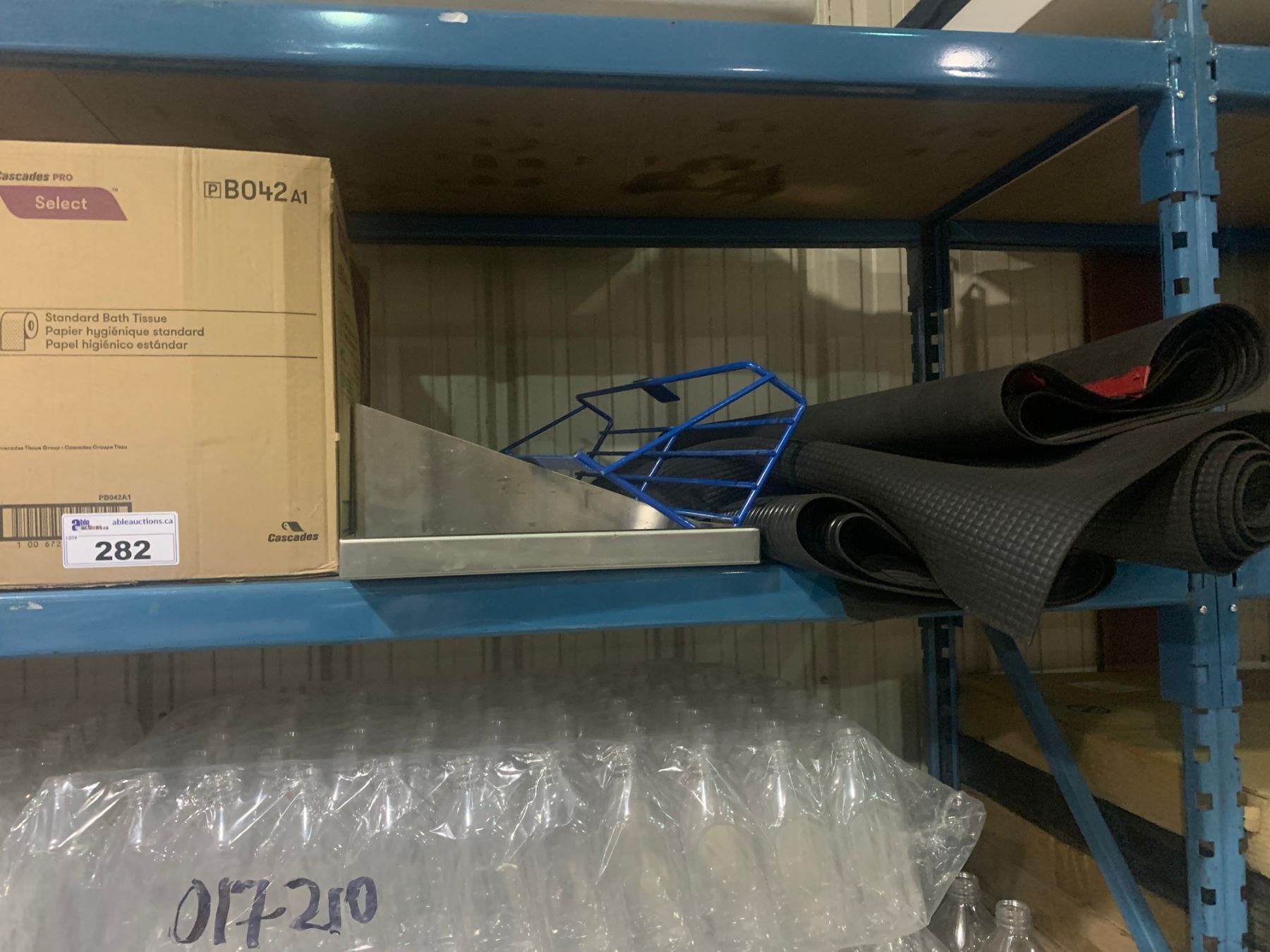 SHELF LOT INCLUDING ; PLASTIC BOTTLES, PAPER TOWEL / BATH TISSUE, FLOOR MATS & STAINLESS STEEL PART