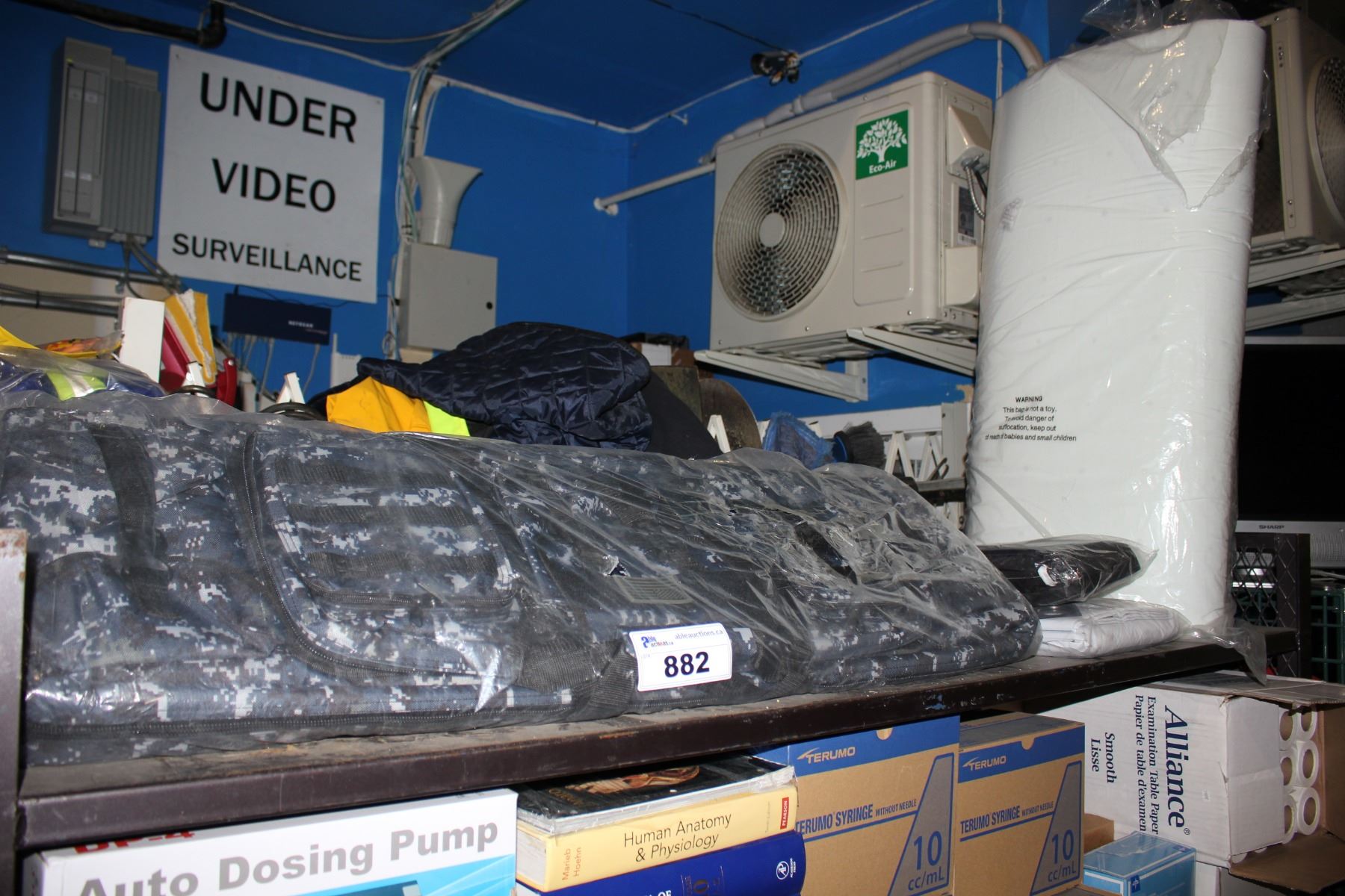 SHELF LOT INCLUDING TWO LARGE TRAVELLING BACKPACKS, MATTRESS TOPPER AND MORE