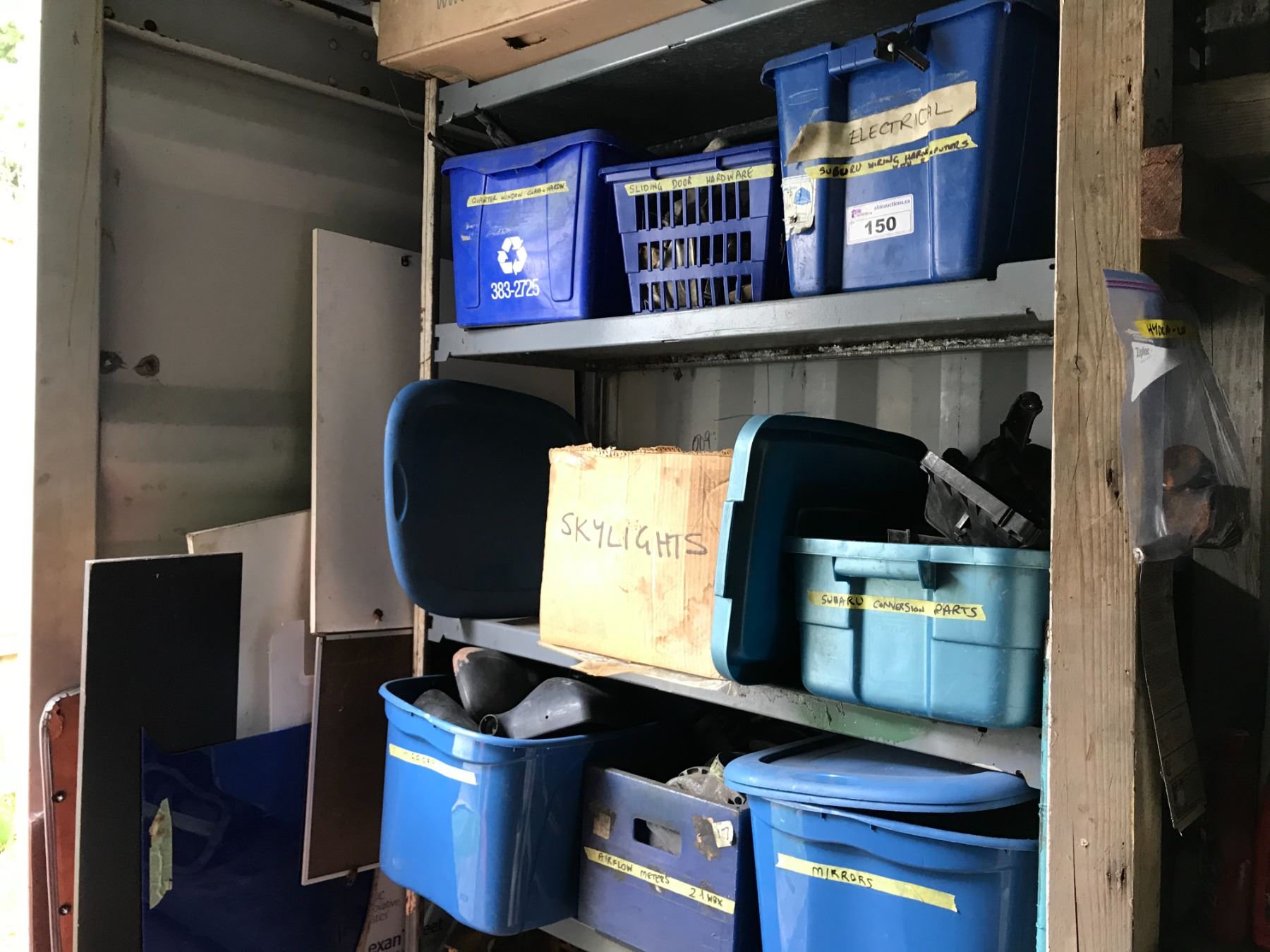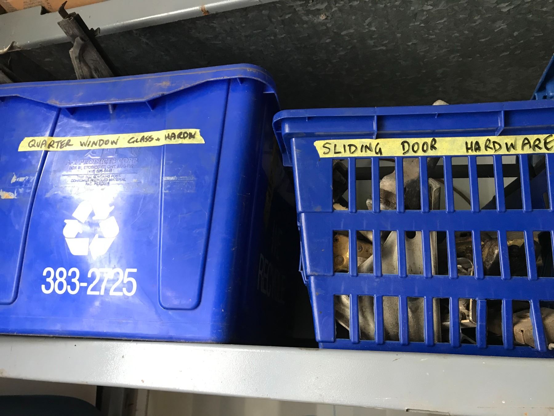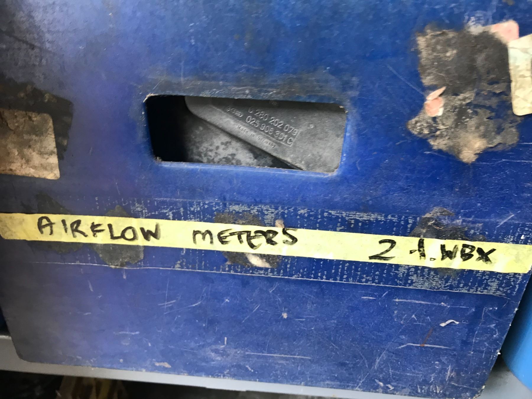 SHELF LOT NEW VANAGON RADIATOR, CAMPER INTERIOR HARDWARE, SUBARU WIRING HARNESS WITH COMPUTER, SLIDING DOOR HARDWARE, QUARTER WINDOW GLASS & HARDWARE, 2 BINS OF MIRRORS & WRX AIRFLOW METERS *NANAIMO*