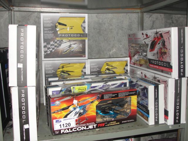 SHELF LOT OF 12 ASSORTED RADIO CONTROL HELICOPTERS