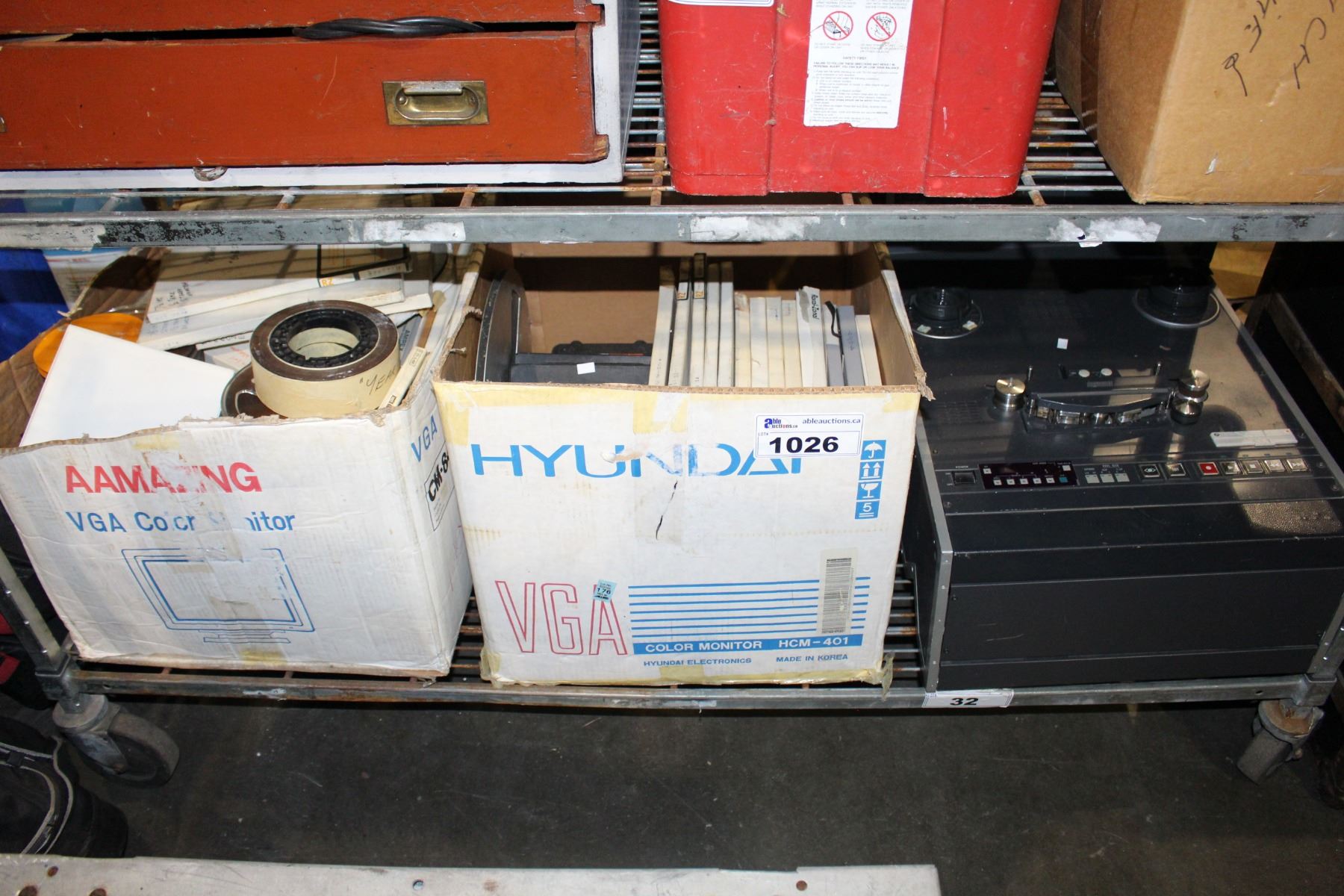 SHELF LOT OF 2 REEL TO REEL DEVICES AND TAPES