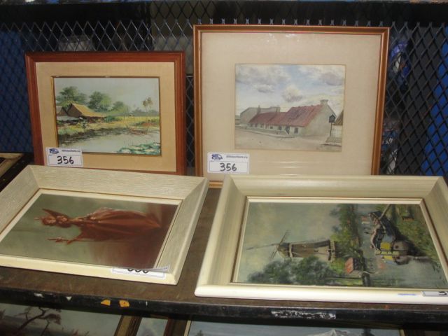 SHELF LOT OF 5 FRAMED ORIGINAL PAINTINGS