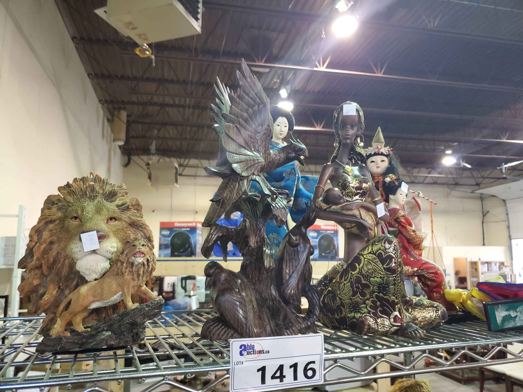 SHELF LOT OF ASIAN & AFRICAN STYLE FIGURINES