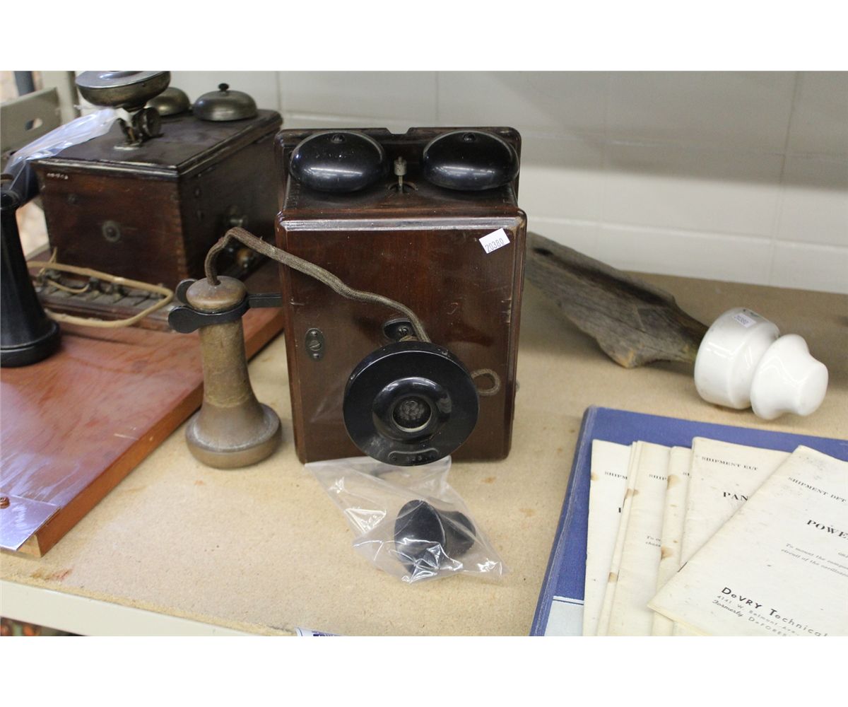 SHELF LOT OF ASSORTED ANTIQUE PHONES