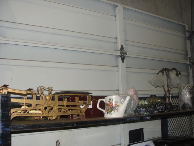 SHELF LOT OF ASSORTED ANTIQUES COLLECTABLES AND DECORATIVE HOUSEHOLD ITEMS