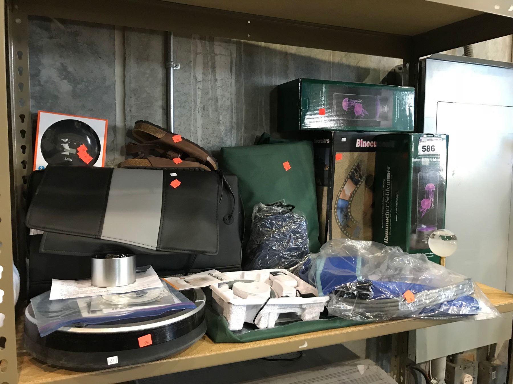 SHELF LOT OF ASSORTED AQUAURIUMS, BINOCULARS, ROOMBA & MORE