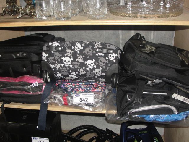 SHELF LOT OF ASSORTED BACK PACKS AND DUFFEL BAGS