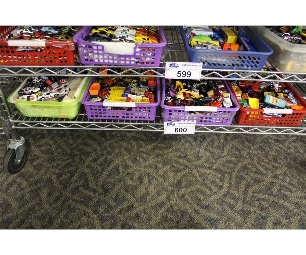 SHELF LOT OF ASSORTED BASKETS CONTAINING VINTAGE TO NEWER (1960'S-90'S) DIE CAST