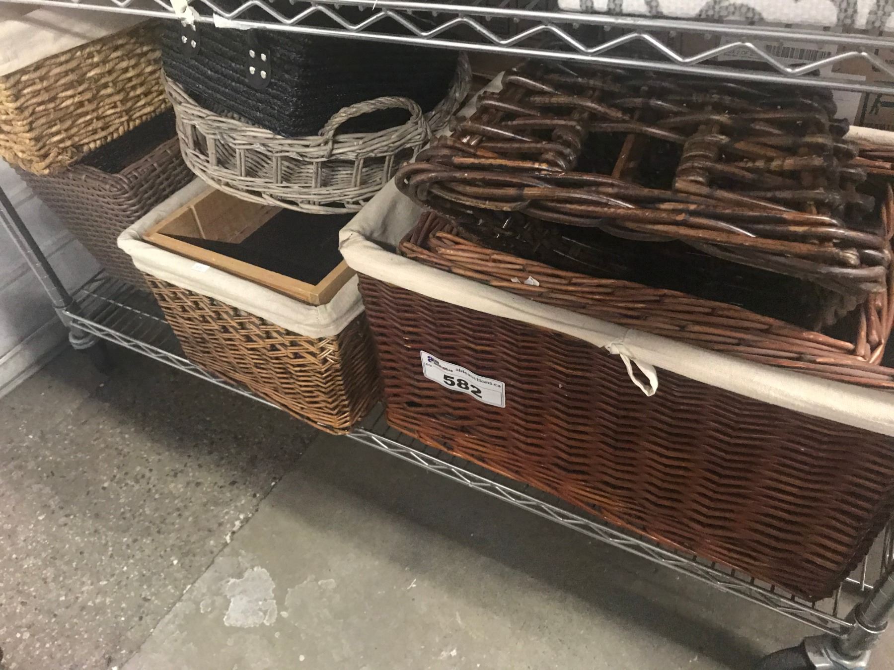 SHELF LOT OF ASSORTED BASKETS