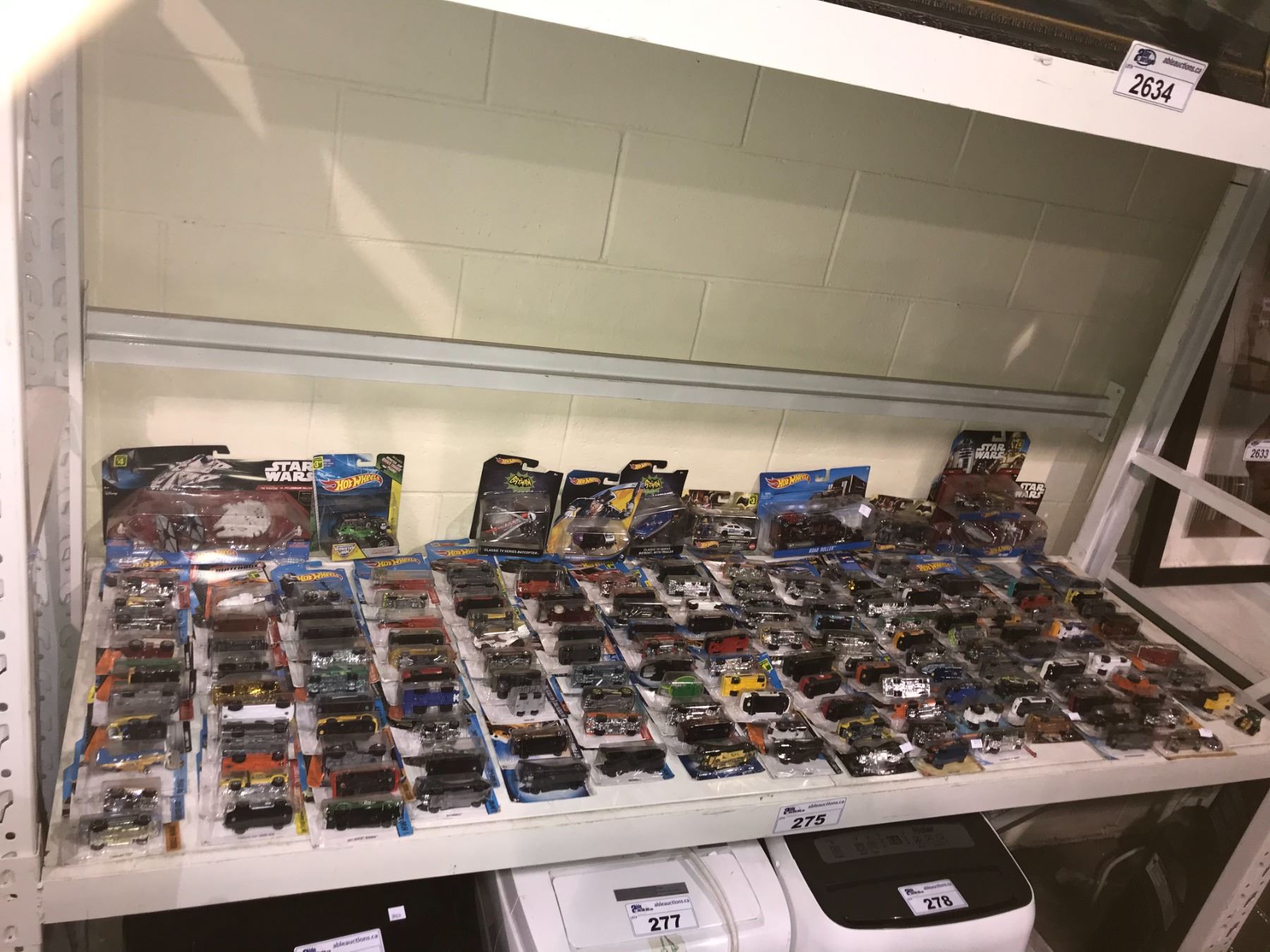 SHELF LOT OF ASSORTED BATMAN, STAR WARS AND COLLECTABLE HOT WHEELS