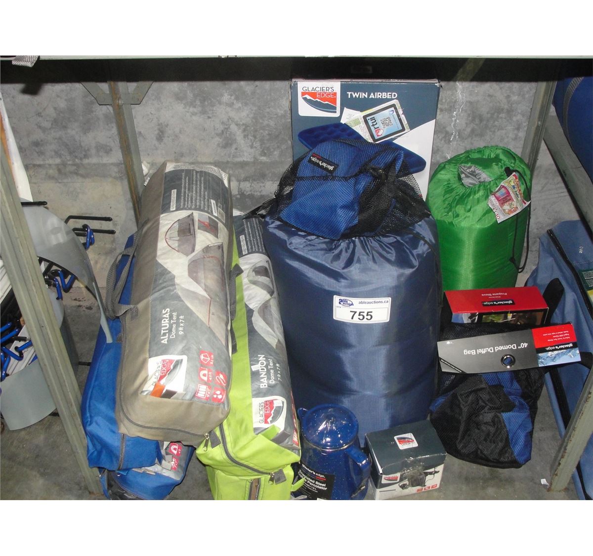SHELF LOT OF ASSORTED CAMPING GEAR