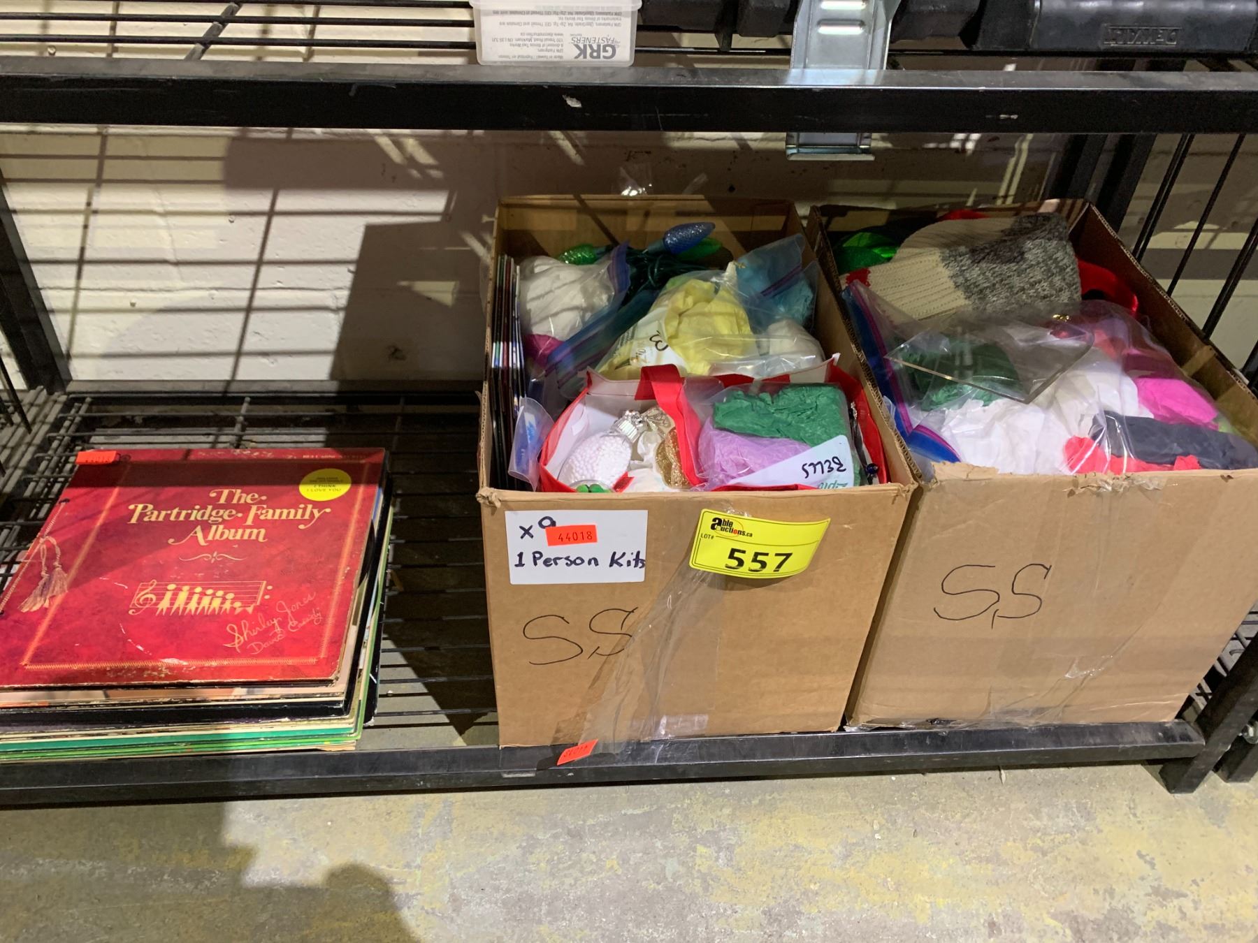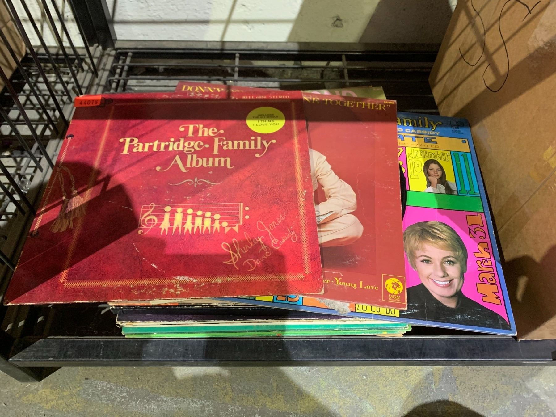 SHELF LOT OF ASSORTED CHRISTMAS RECORDS, AND CHRISTMAS DECOR