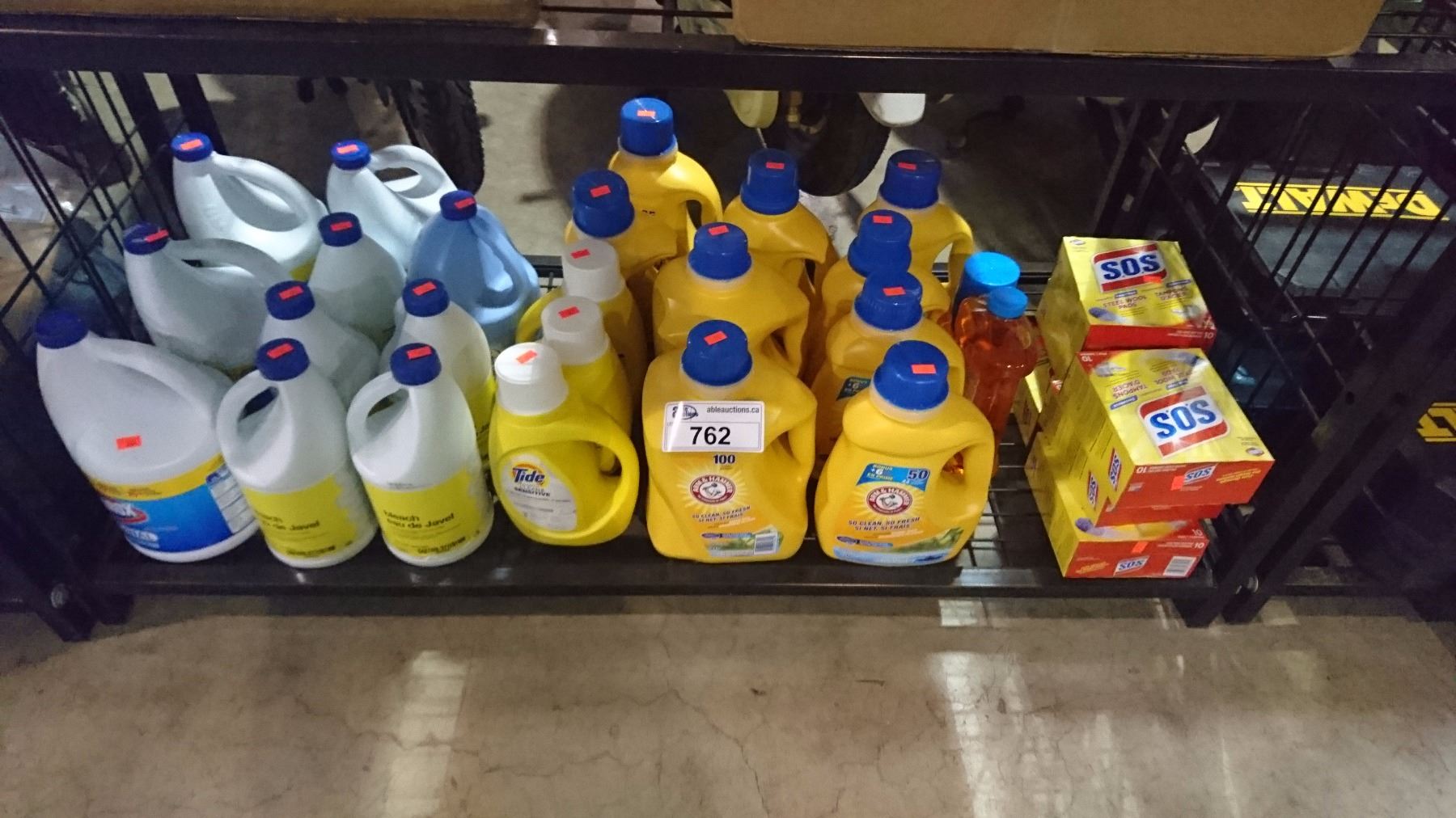SHELF LOT OF ASSORTED CLEANING SUPPLIES/DETERGENTS