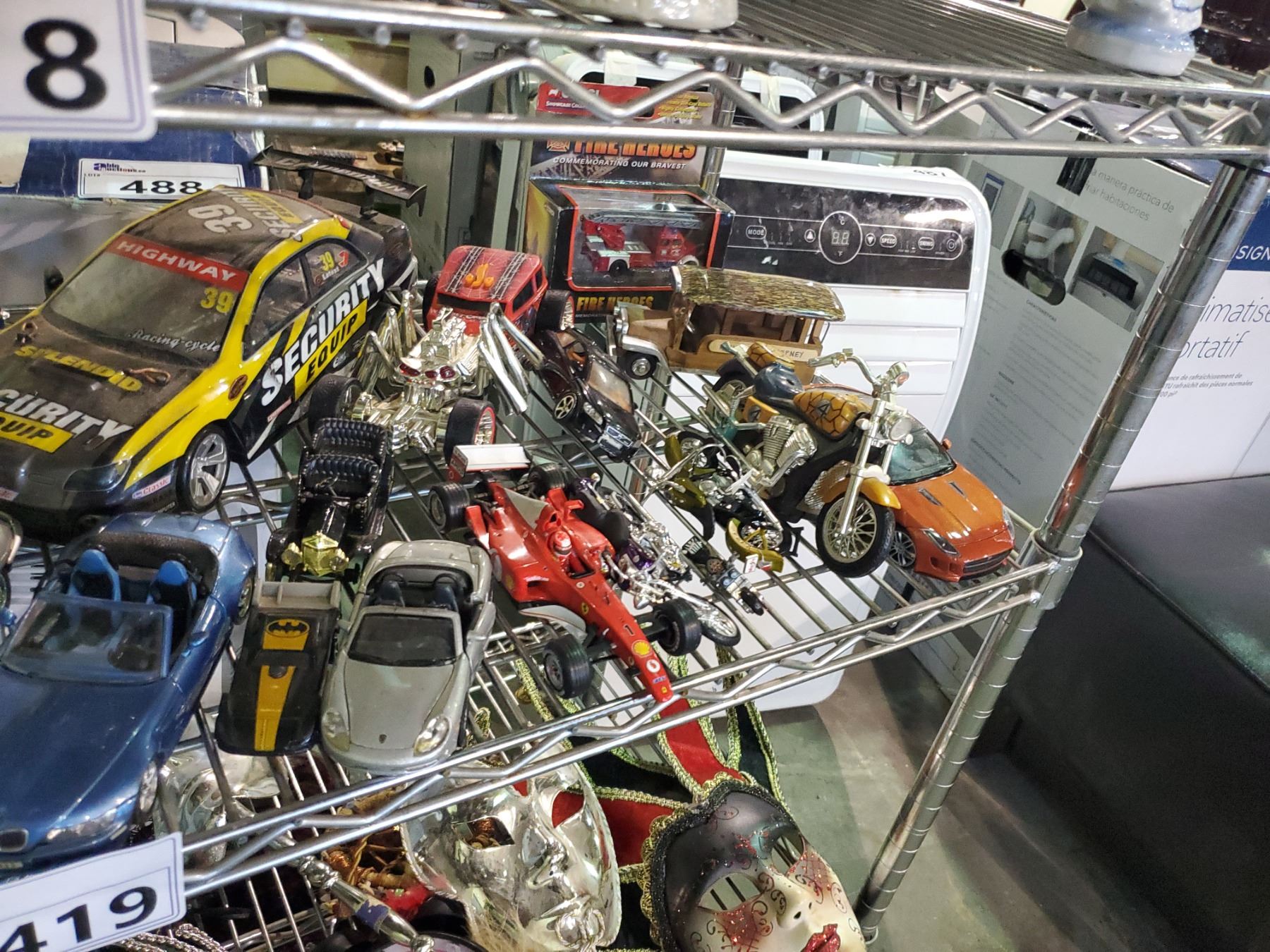 SHELF LOT OF ASSORTED COLLECTIBLE CARS & TOYS